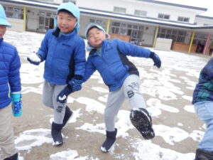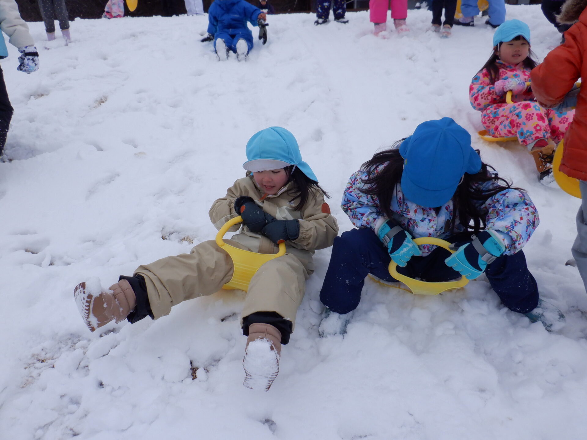 みんなで遊ぶとあっという間になくなってしまった園庭の雪・・・もっと雪を探しに行こう!!と、年中児、年長児でこども園の隣りにある龍門渕公園へ出かけ雪遊びを満喫しました。