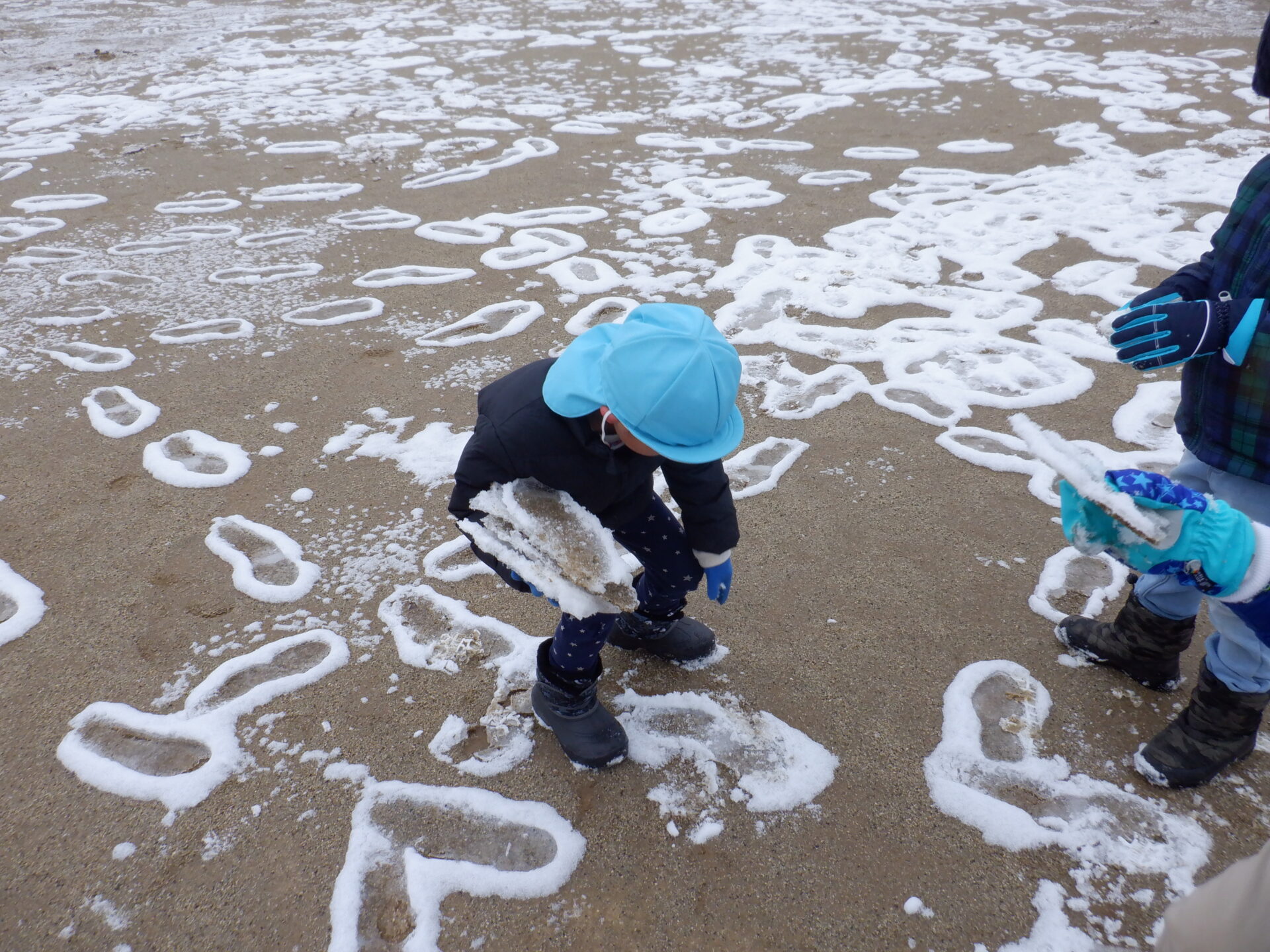 この時期ならではの雪や氷を使った遊びが始まりました。