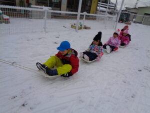 ・友達と一緒にソリを繋げると電車みたいになって面白い。