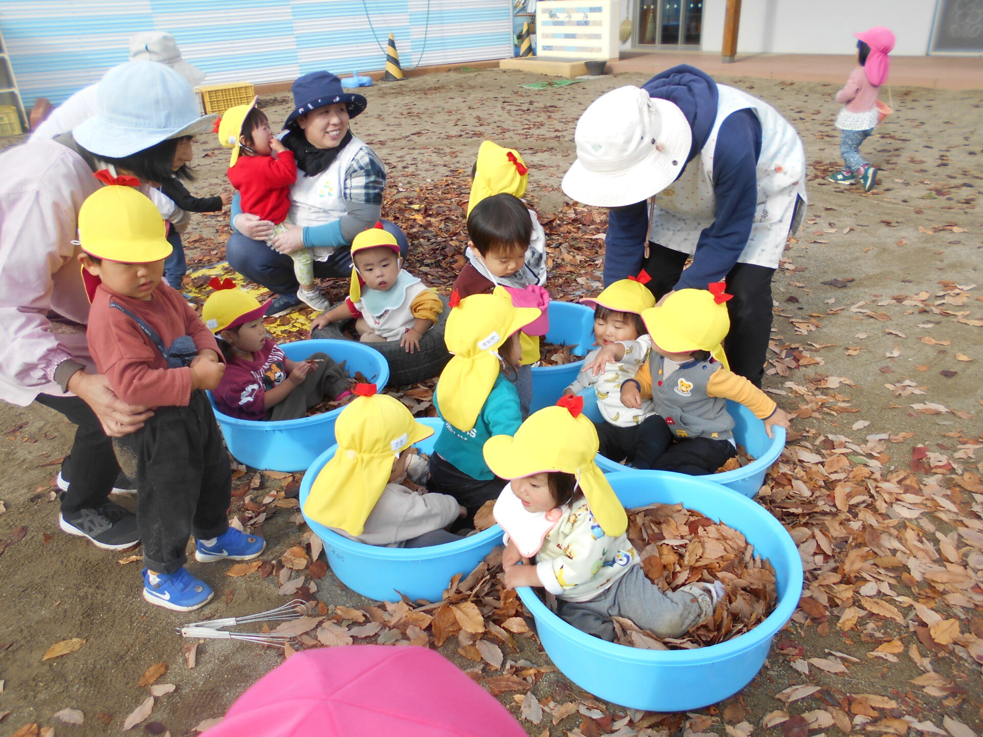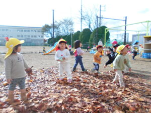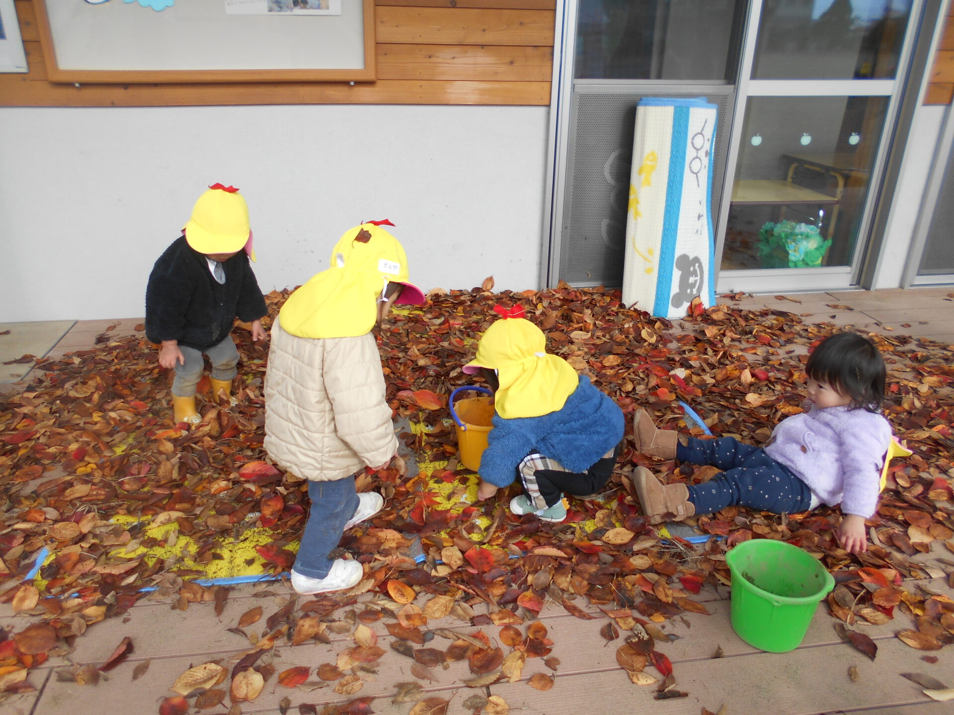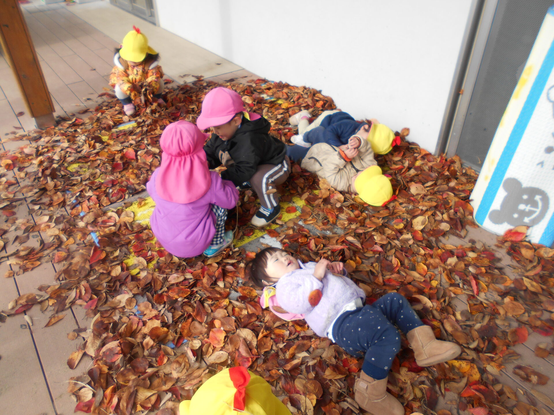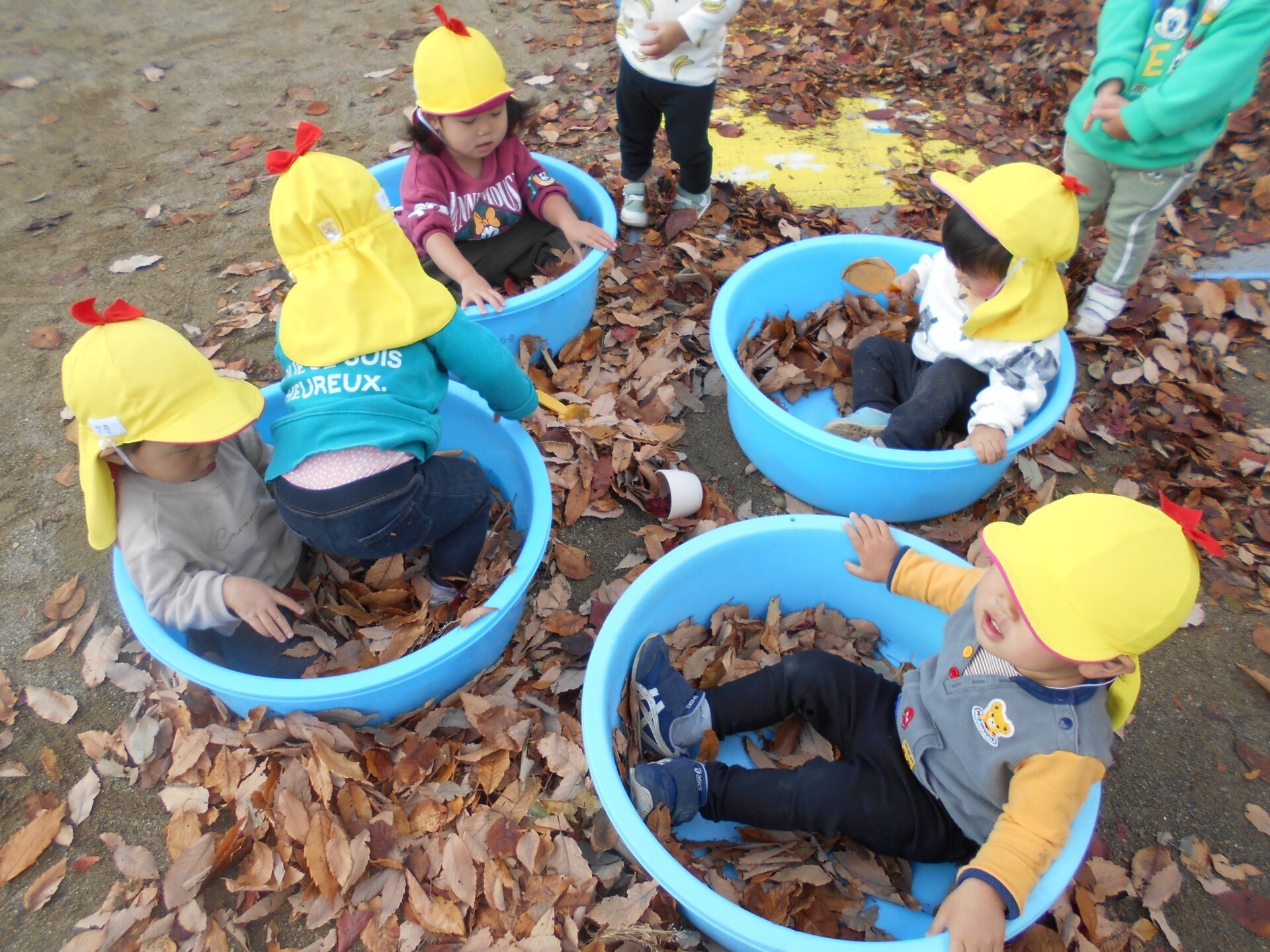 投稿が遅くなってしまいましたが、秋に園庭で落ち葉遊びをたくさんしました!
