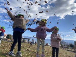 天候がよく落ち葉もたくさんあったので、子ども達も思い思いに落ち葉を拾ったり、踏んだり投げたりして楽しむことができました。