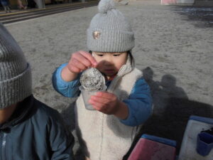 今年は雪が少ない年でしたが、氷を見て「花火みたい」といってイメージを膨らませたり、木の芽を見つけたりすることで、冬の寒さや季節の変化を五感で感じることができて、よかったです。
