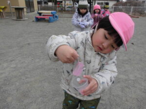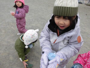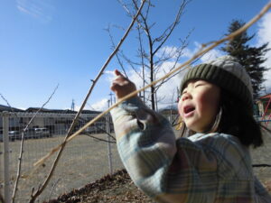 寒い中でも防寒着を着て、戸外に出ていろいろな発見をしていきたいと思います。