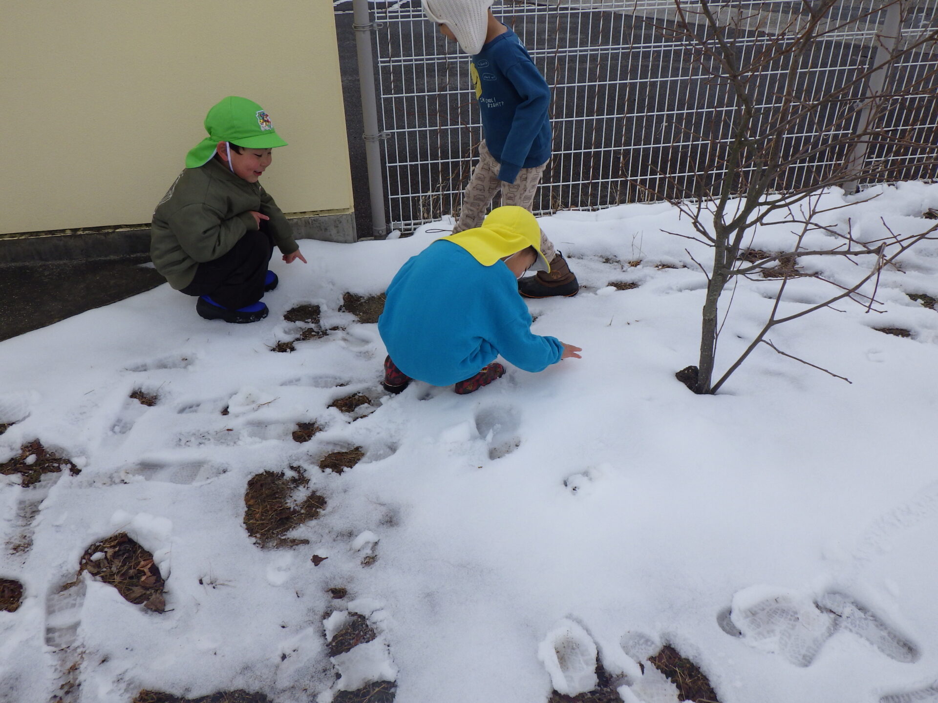 「どうして足跡がついたのかな?」 「飛んできたのかな?」