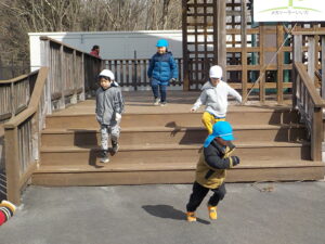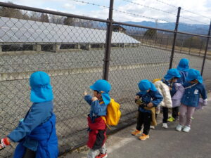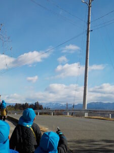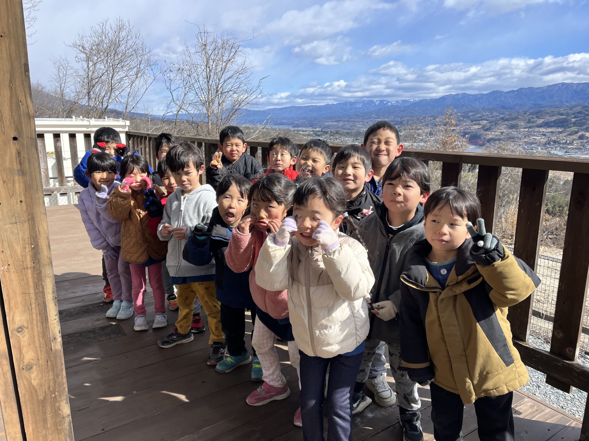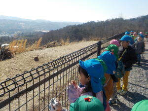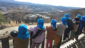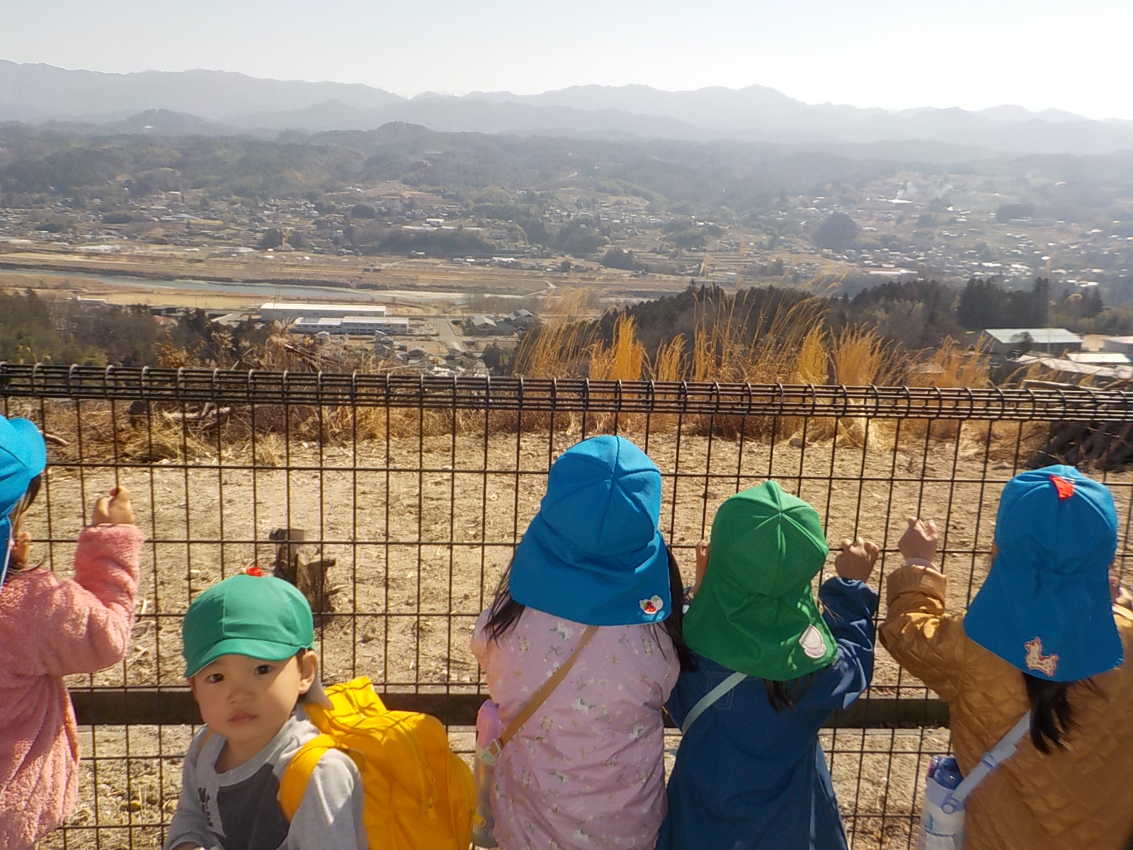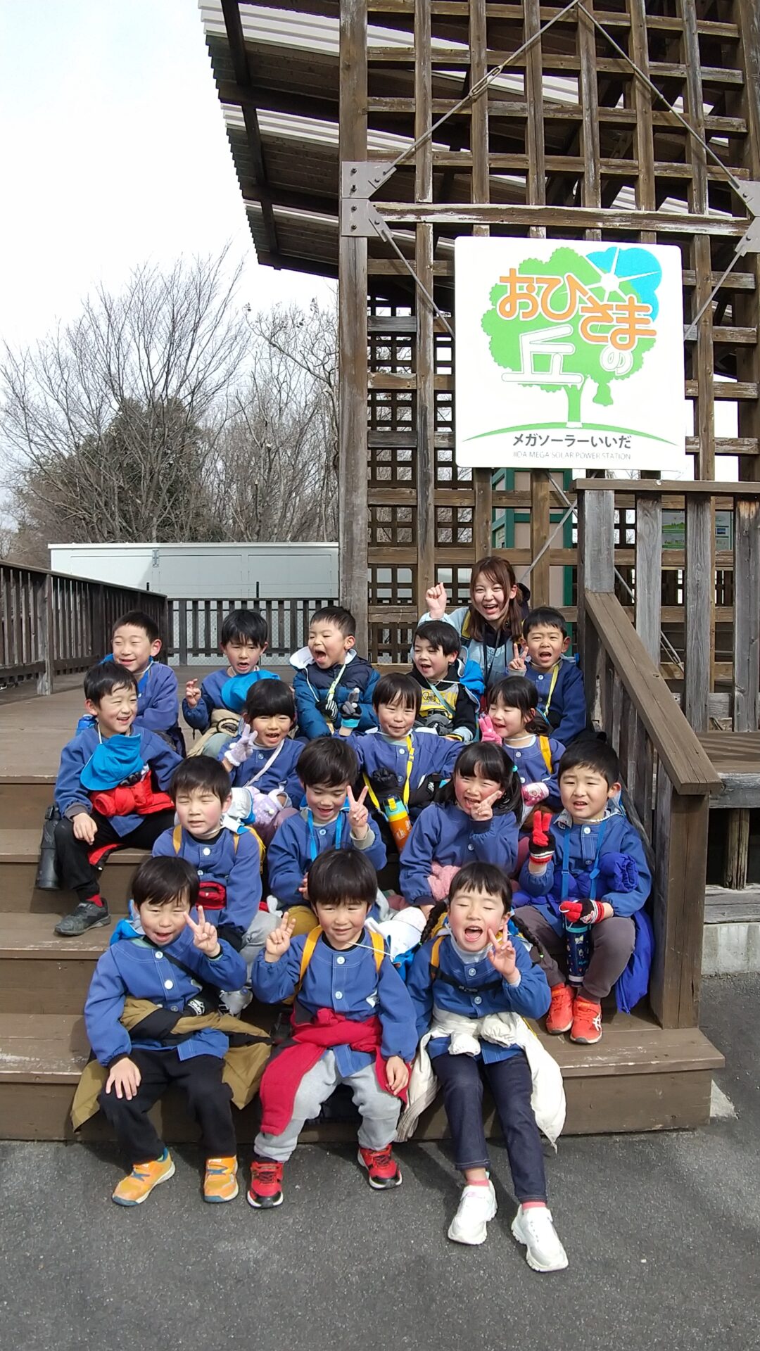 3月に入り、「地域の方がメガソーラー周辺の木々を伐採してくれた」というお話を聞き、全園児でメガソーラーへ出掛けました。綺麗に伐採して下さってあり、今まで以上に見晴らしが良くなっていました。もちろん「やっほー!」も忘れません。