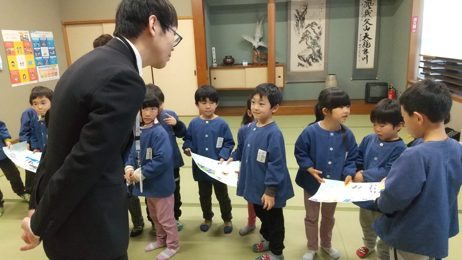 2月25日に『飯田パワーグリット開運式(蓄電池)』の式典があり、年長さんが招待されました。