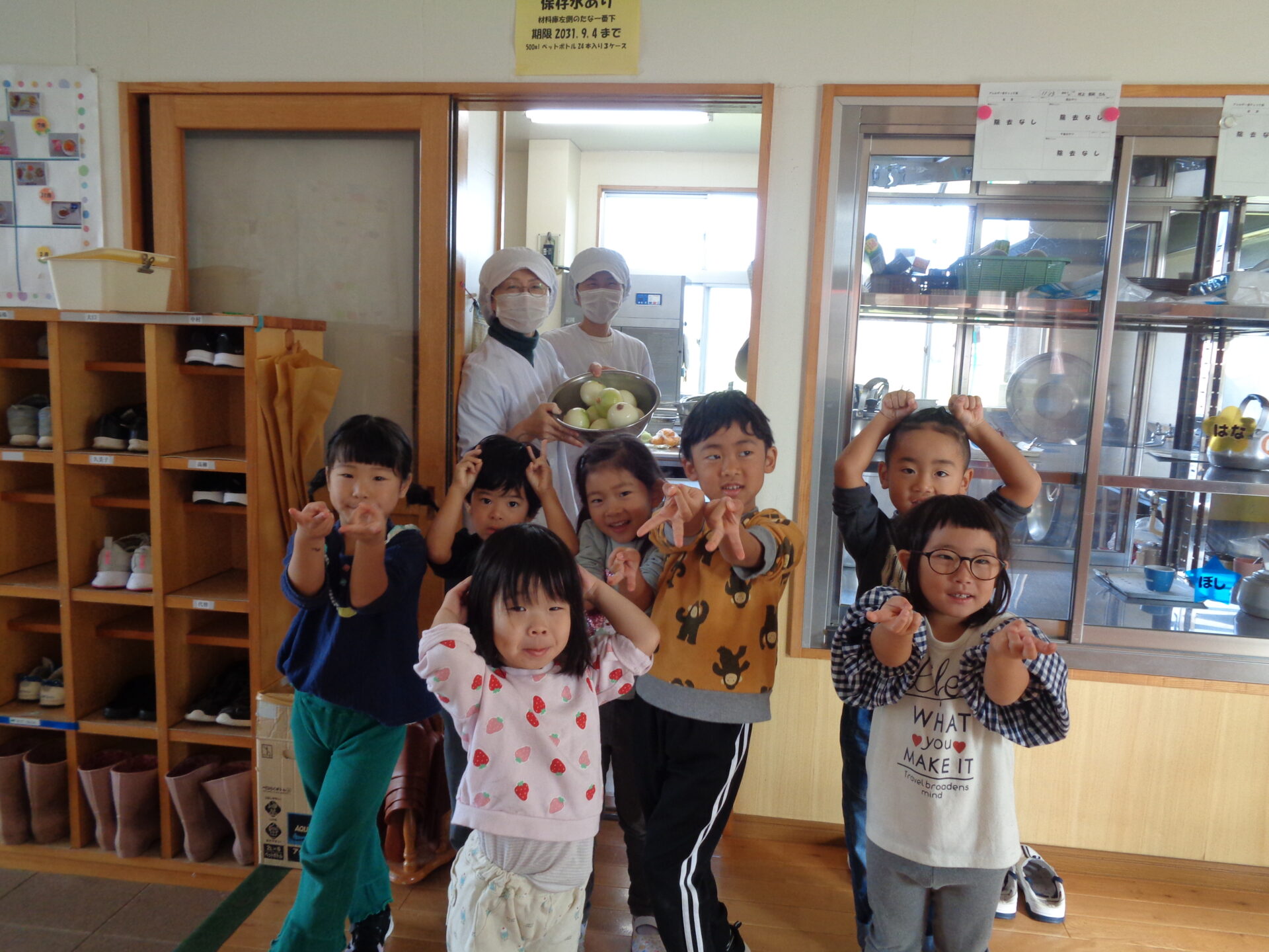 給食の先生に仕上げた材料をお届けしました。「おねがいしまーす💛」