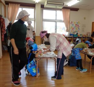 お手伝いさせてくださーい」とやって来た年少さん。