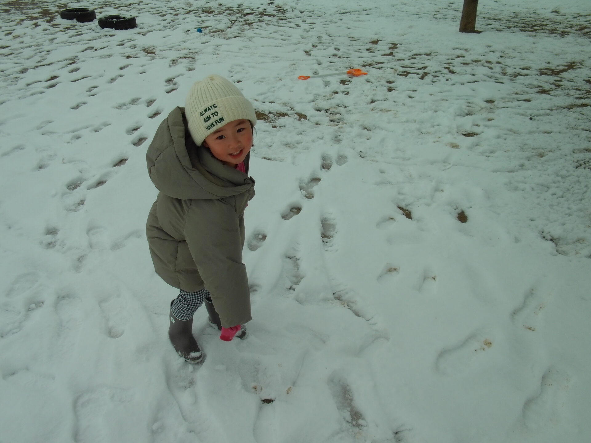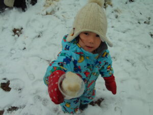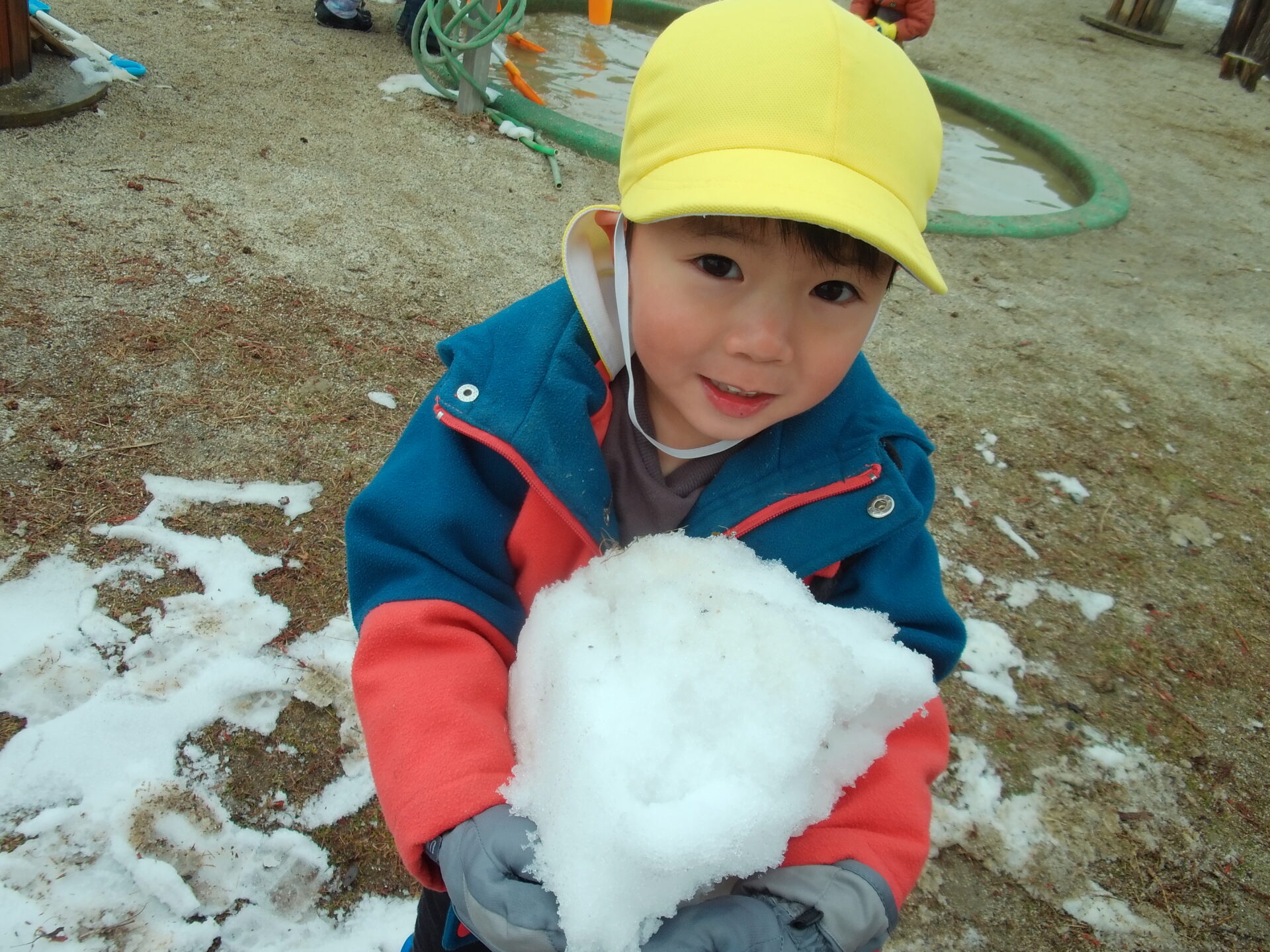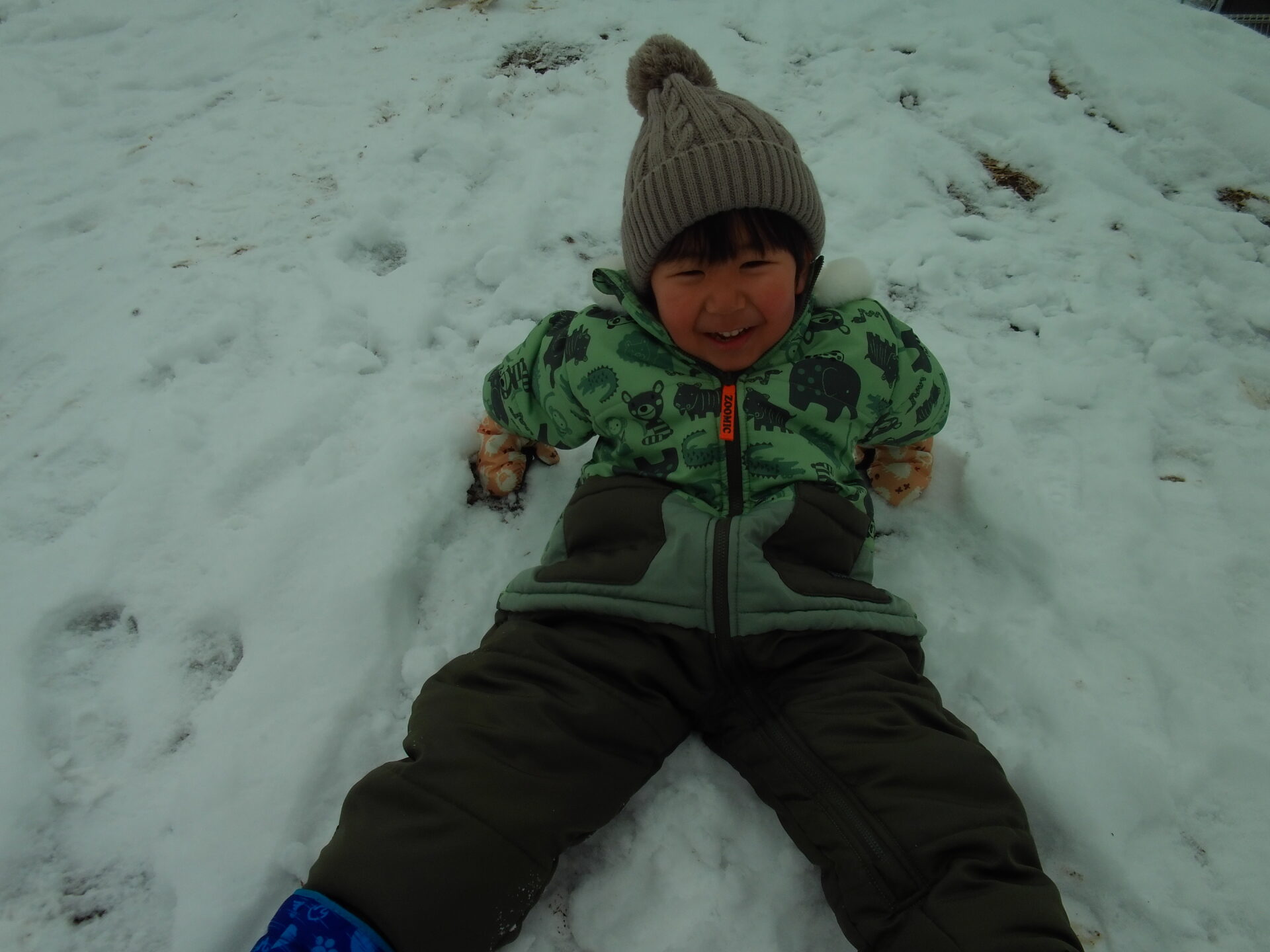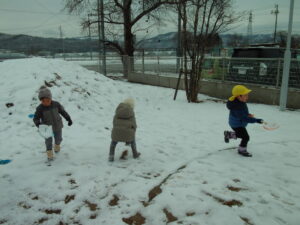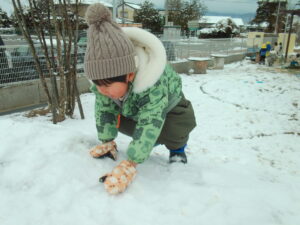 春が近づいてきた3月上旬。「もう降らないかなー?」と諦めかけていた雪が降り、大興奮な子どもたち。さっそくウェアを着て外へかけ出していき、それぞれ楽しいあそびを見つけました。