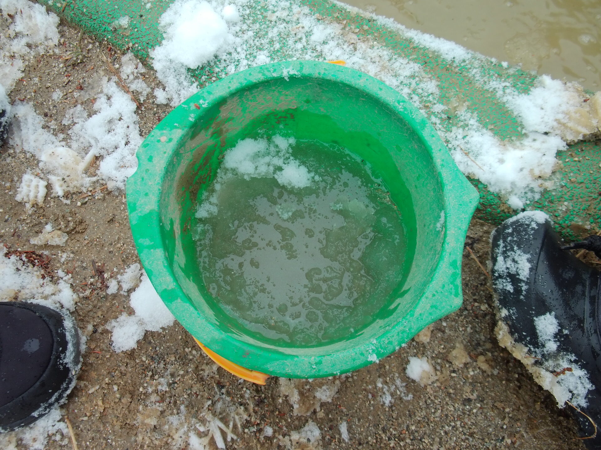 「バケツの水が凍っている!」
