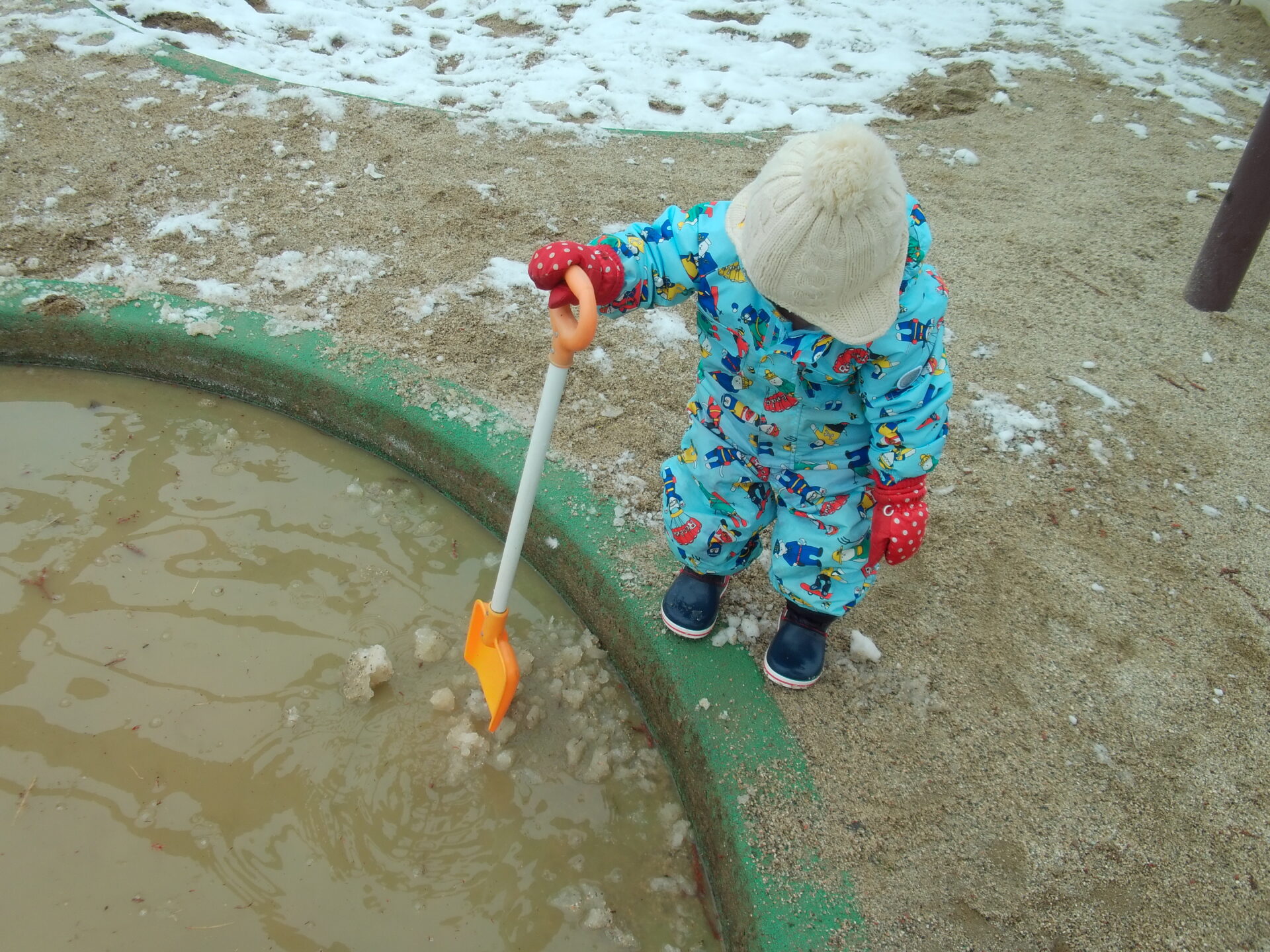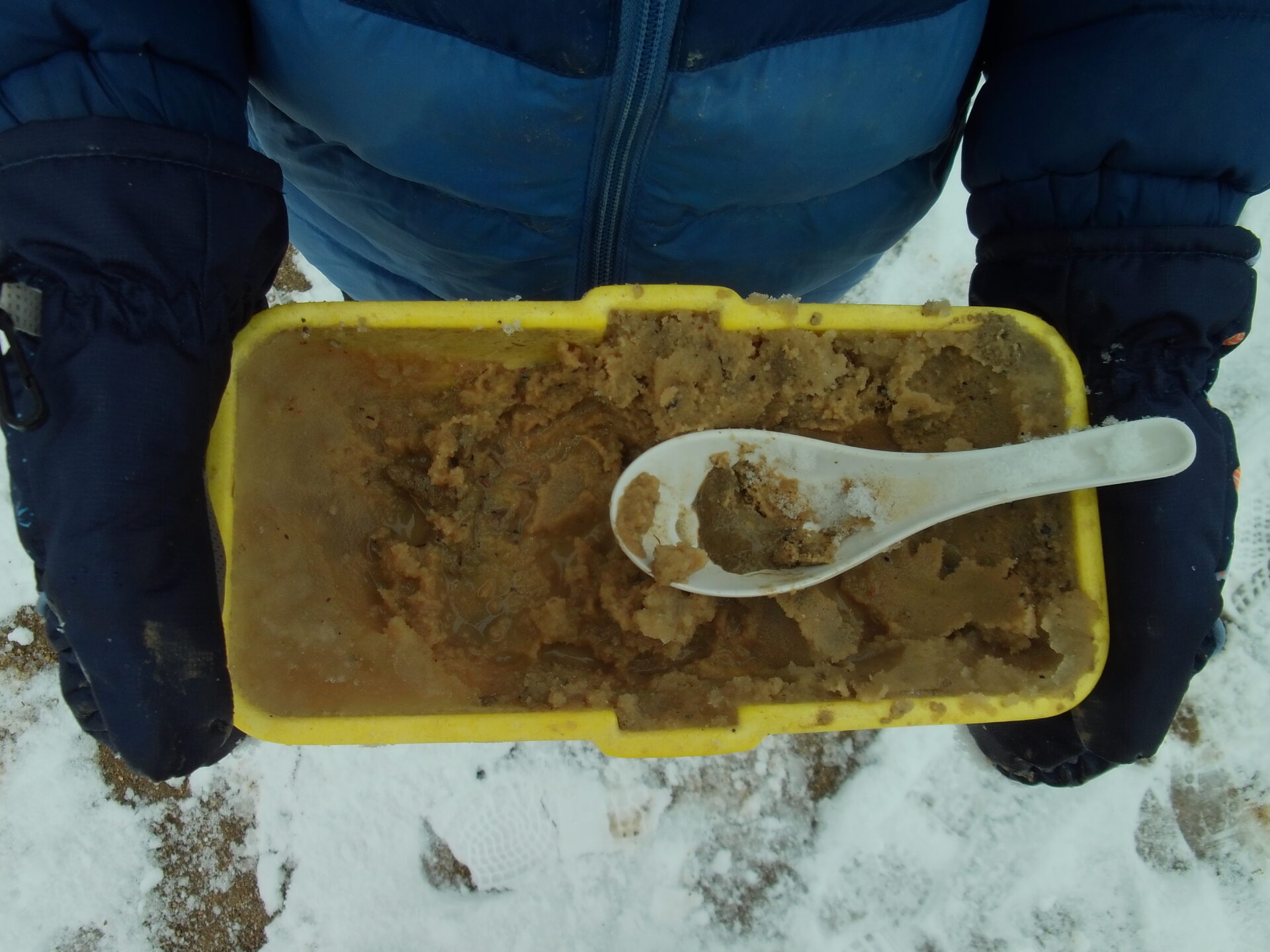 「白い雪が茶色になったよ!」