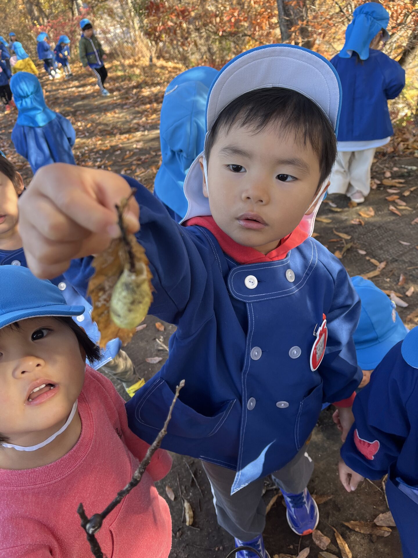 園庭ではなかなか触れられない秋の自然に思い切り触れて楽しんでいました。