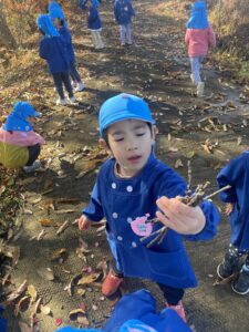 帰り道では、お散歩バックにどんぐりや栗、木の枝などたくさんの素敵なお土産を詰めてとっても嬉しそうな子どもたちでした。