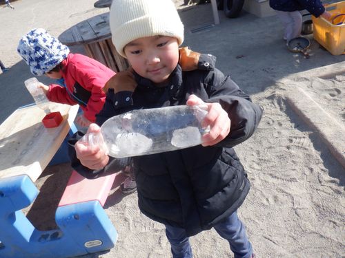 ペットボトルごおりー!見事な出来栄えに、満足そう。