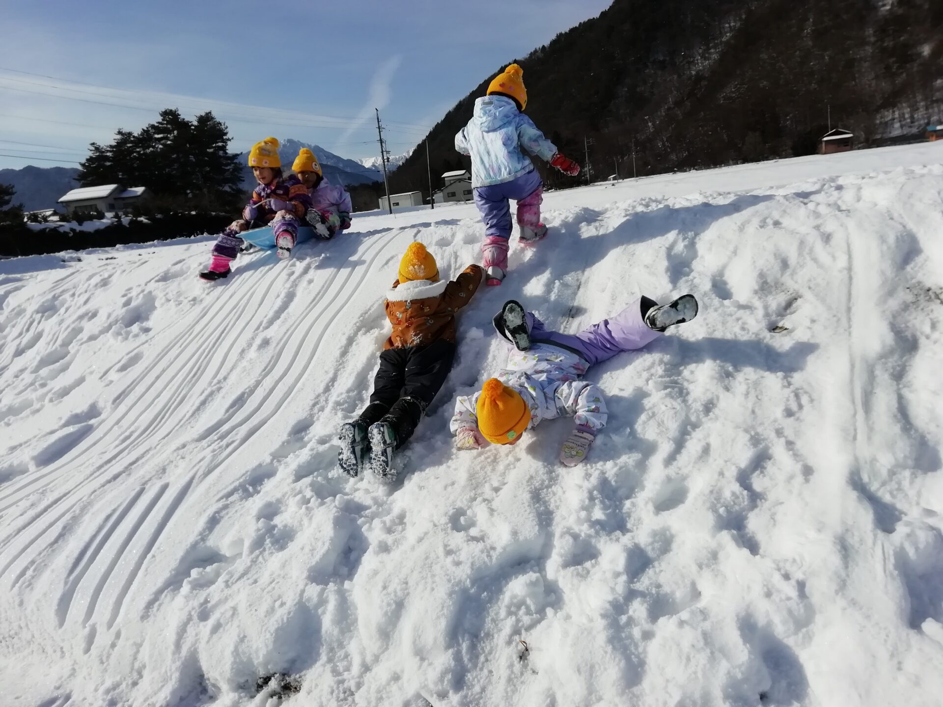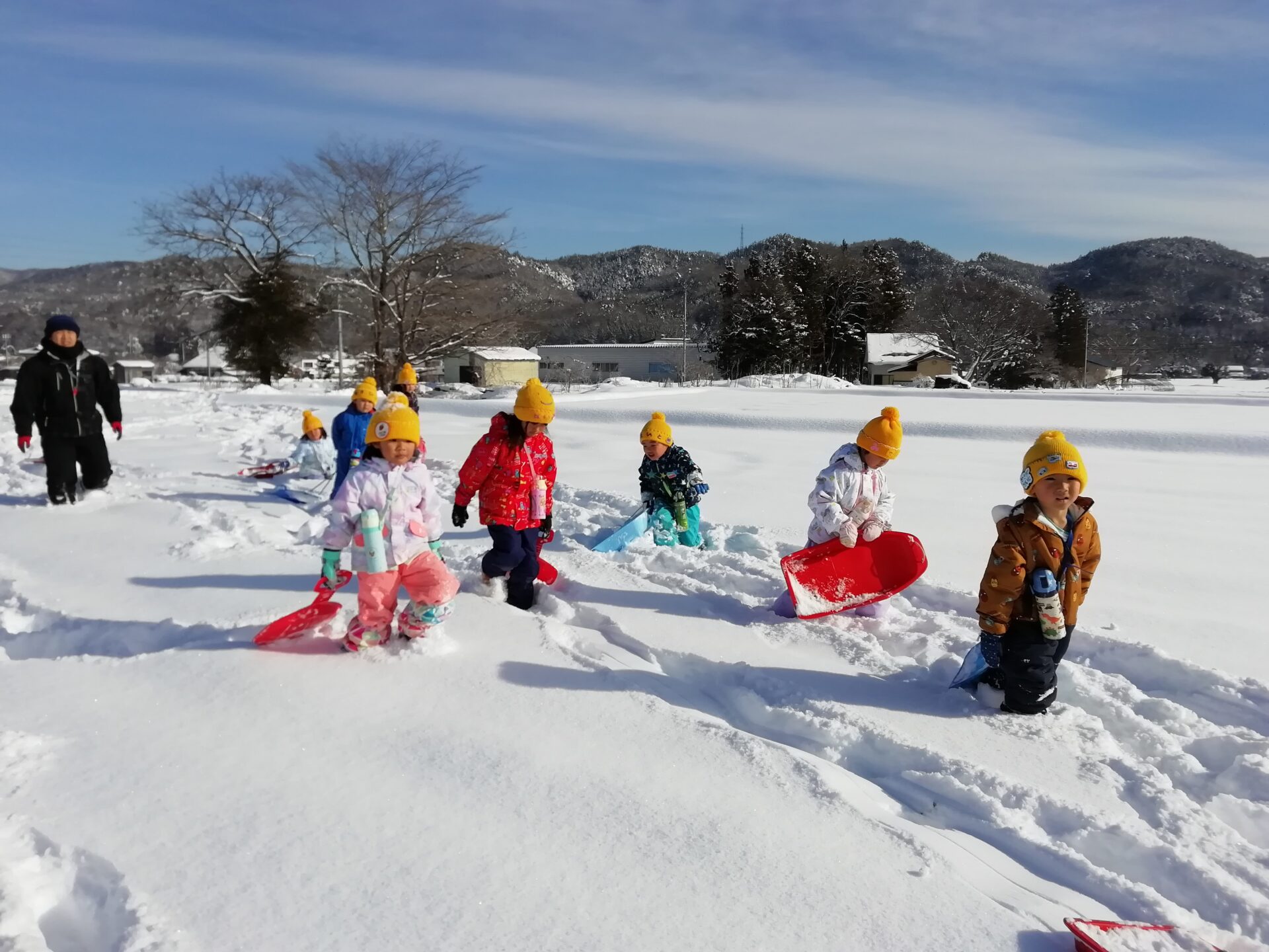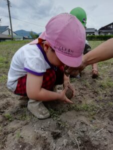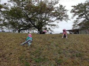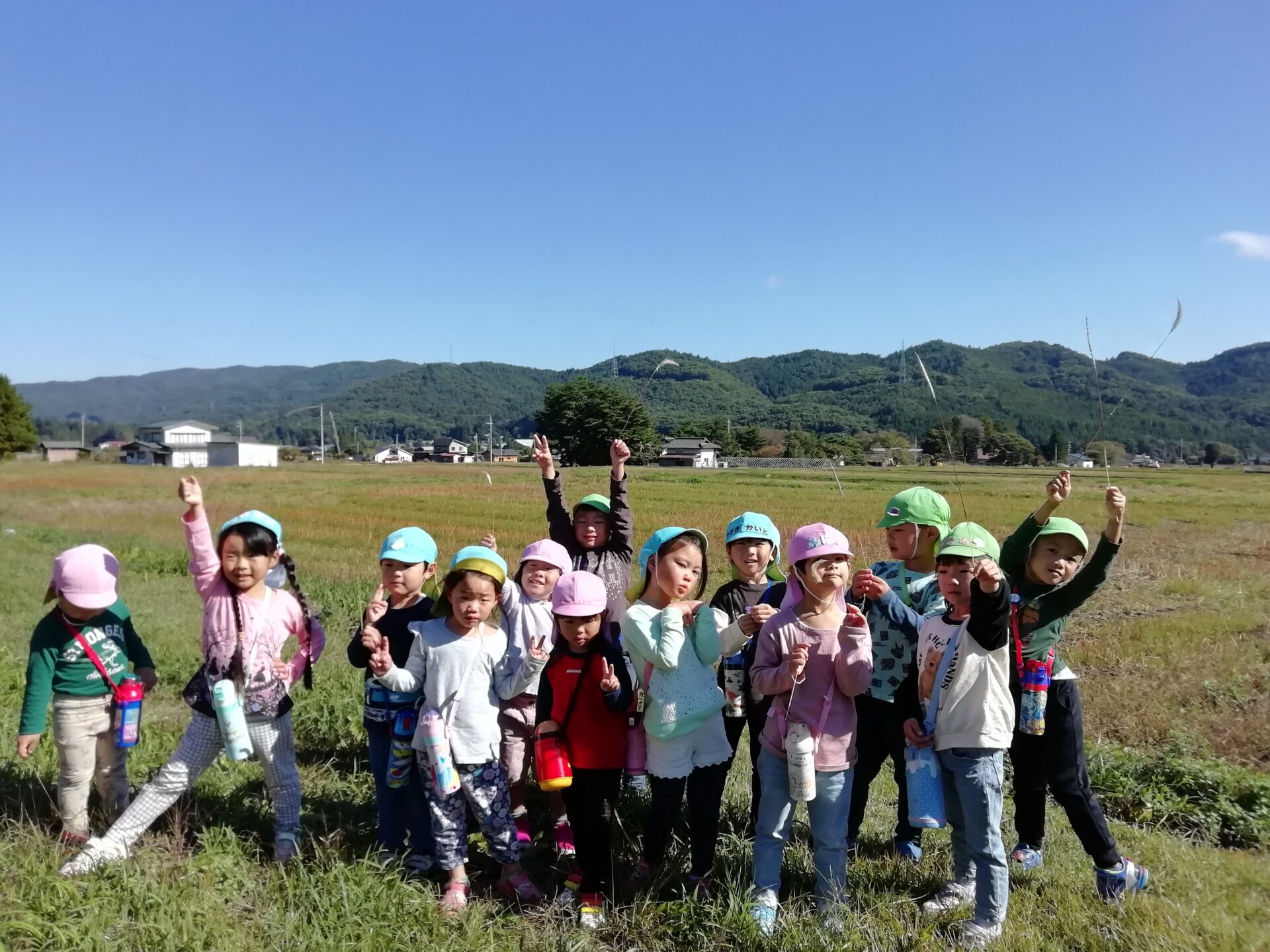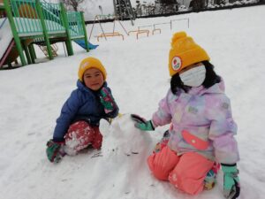 それが、秋冬になると、「今日はどこに行く?」「あっちの方も面白そうだよ」と自分たちで楽しそうな場所を散策したり、未満児さんも加わって、「車が通る方は危ないから私が歩くよ」と年下の子を面倒見る姿が多くなりました。