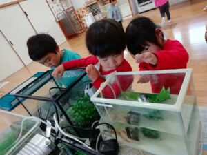 遊びの中でも、お兄さんお姉さんがやっている遊びを「いいなあ」「〇〇くんはこうやってた!」と見たり真似たりする姿が多くありました。