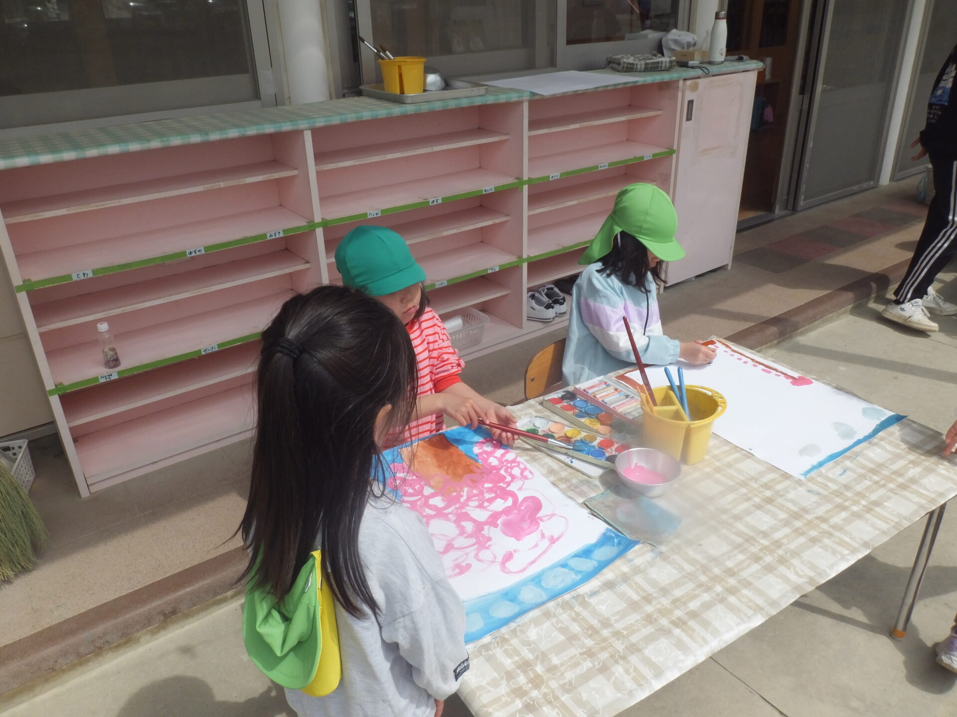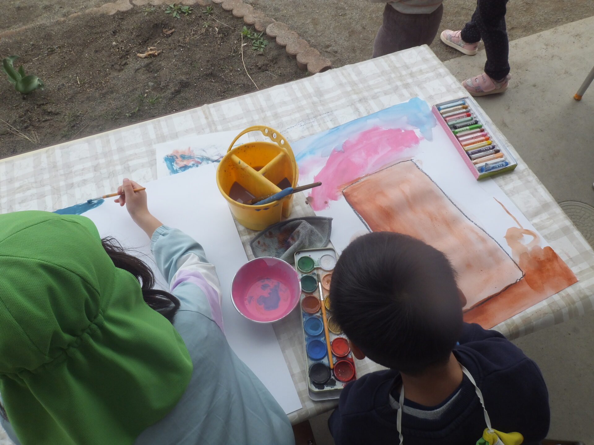 「桜の花は、こんな感じかな?」「桜の中に空があるよ」描きながら、こんなつぶやきが聞こえてきました。