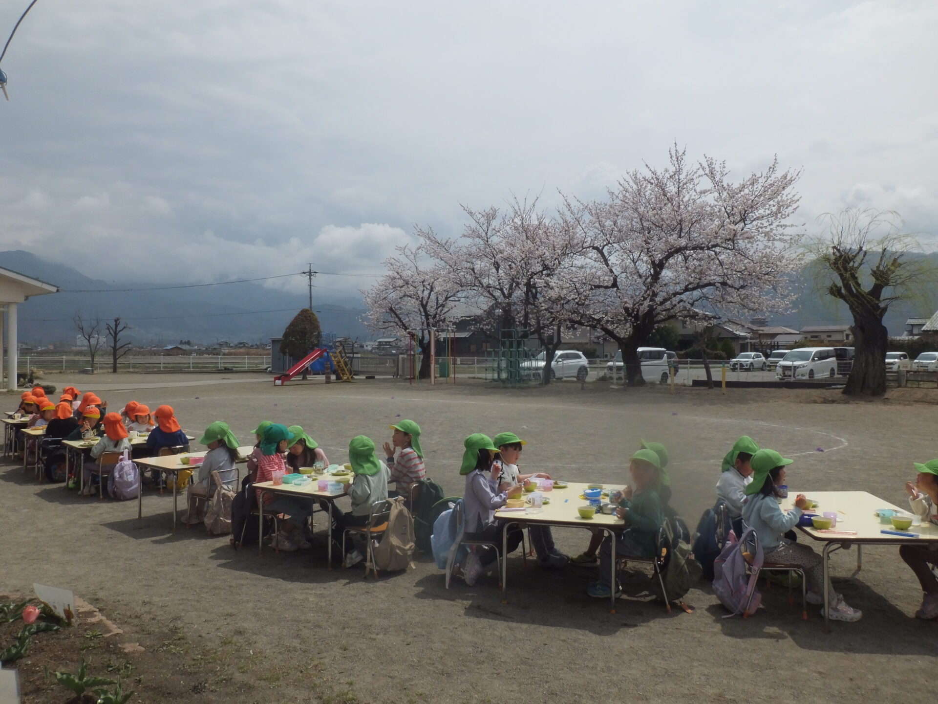 ・桜の花を見ながら食べた給食は、いつもと違う味がしたよ