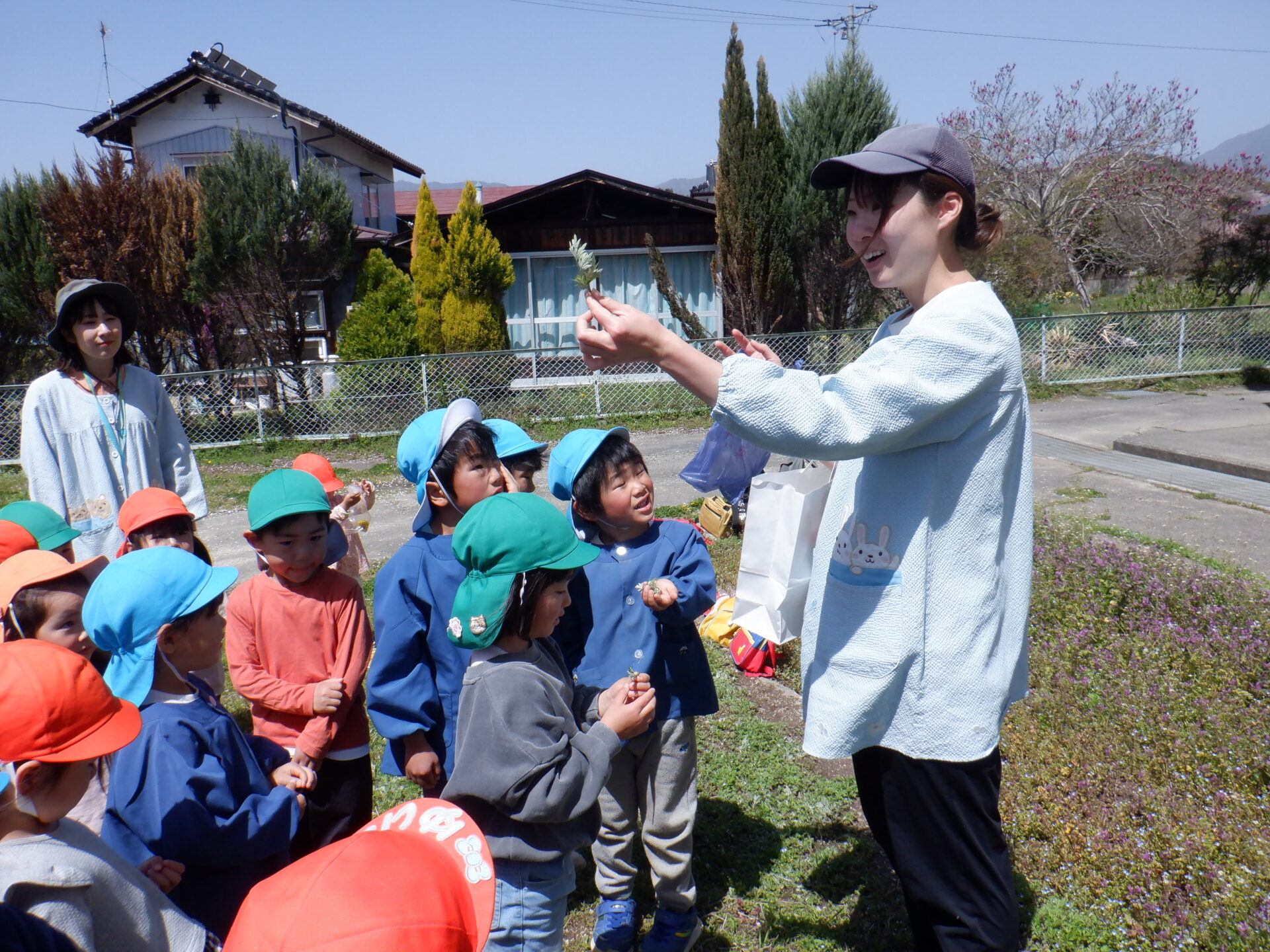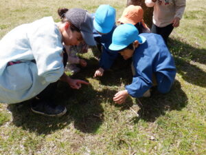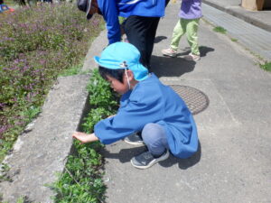 ・毎年よもぎ摘みを行っているので、散歩で歩いている道の途中や他の場所でも「これよもぎだ。」と見つけることができるようになっている。他の草花についても名前を知ることができるような機会も作っていきたい。