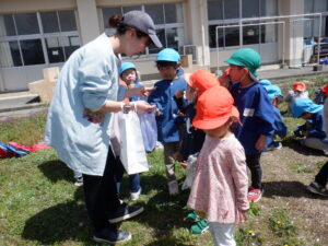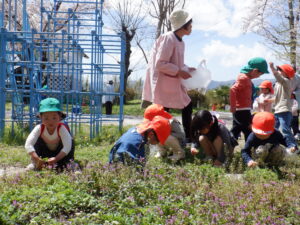 「先生、これでいいの?」と聞きながら、年中さん、年少さんも一生懸命摘んでいました。