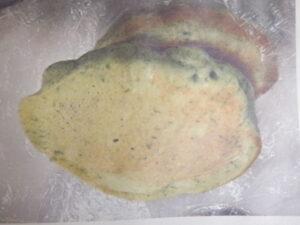 たくさん摘んだよもぎは下処理をしてこんなよもぎホットケーキになりました。