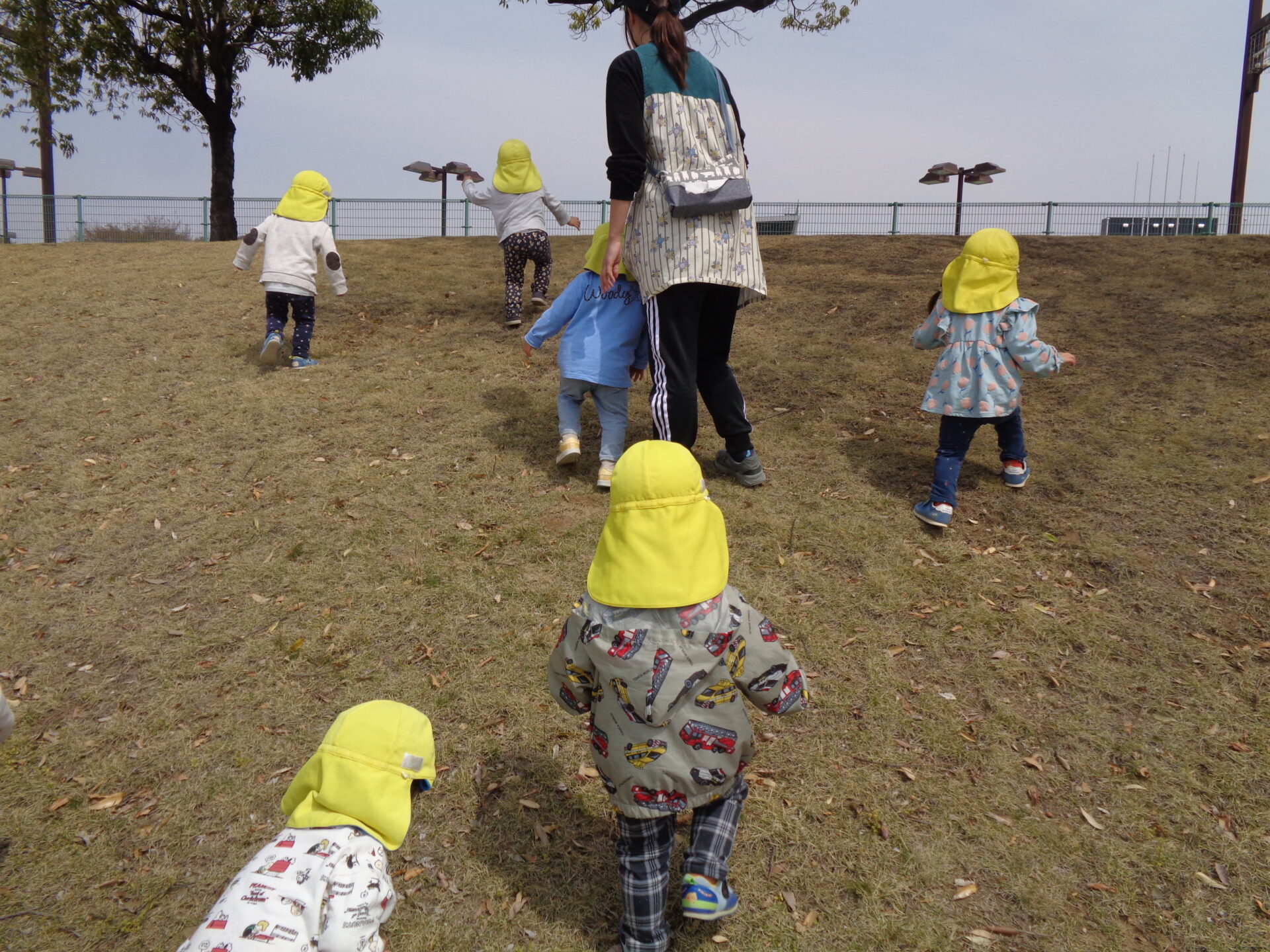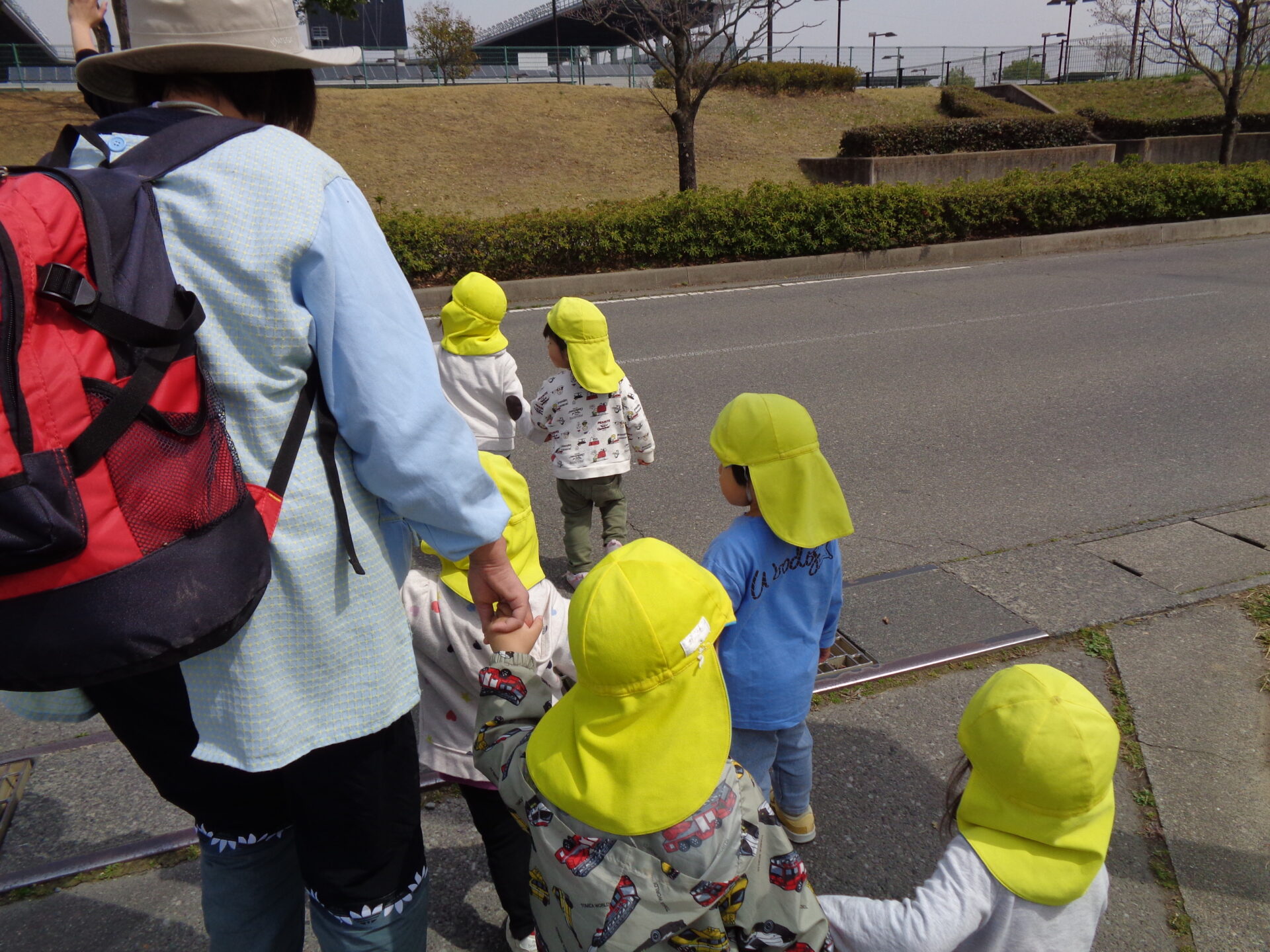 初めてのお散歩で緊張していたのはどうやら保育士だけだったようで、子ども達はよく歩き、伸び伸びと探索を楽しんでいました。