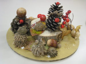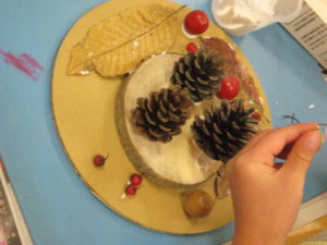 お約束「落ち葉を3枚、まつぼっくりを3個」を先に選びます。