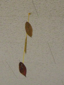 子ども達から「ここは、みんなの森だから落ち葉が降って来るよ。」の声があり葉っぱのシャワーの完成!子ども達からの発想が素晴らしく子ども達と一緒に環境作りを進めます。
