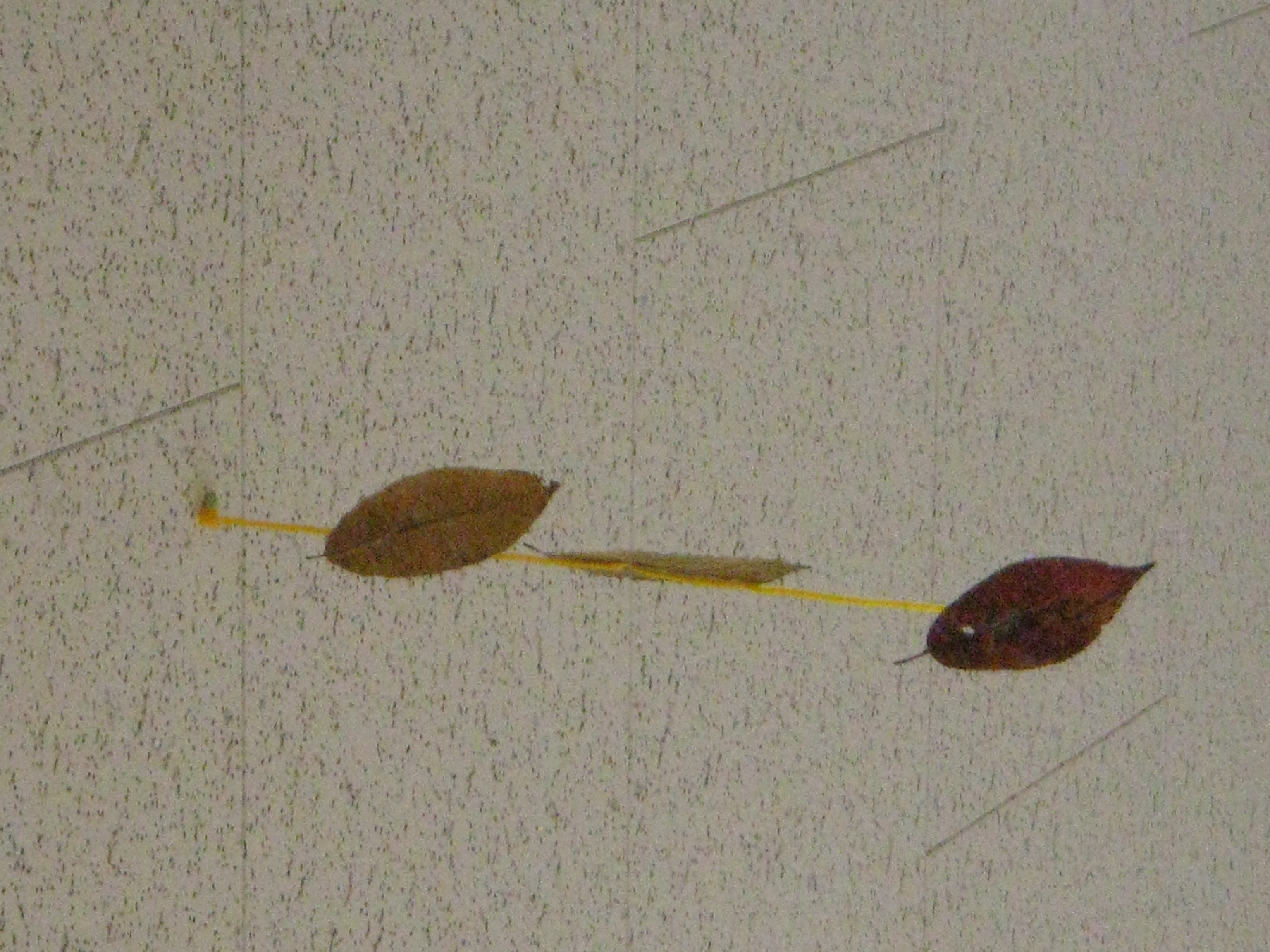 みんな落ち葉を貼る中で、立てて貼っていた男の子に「何しているの?」と聞くと「お相撲だよ、はっけよい!しているの。」と教えてくれました。様々な経験を通して工夫する姿が見られます。