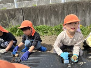 4月22日に保育園近くにあるあおきっこ広場横にある畑でじゃがいも植えを行いました。