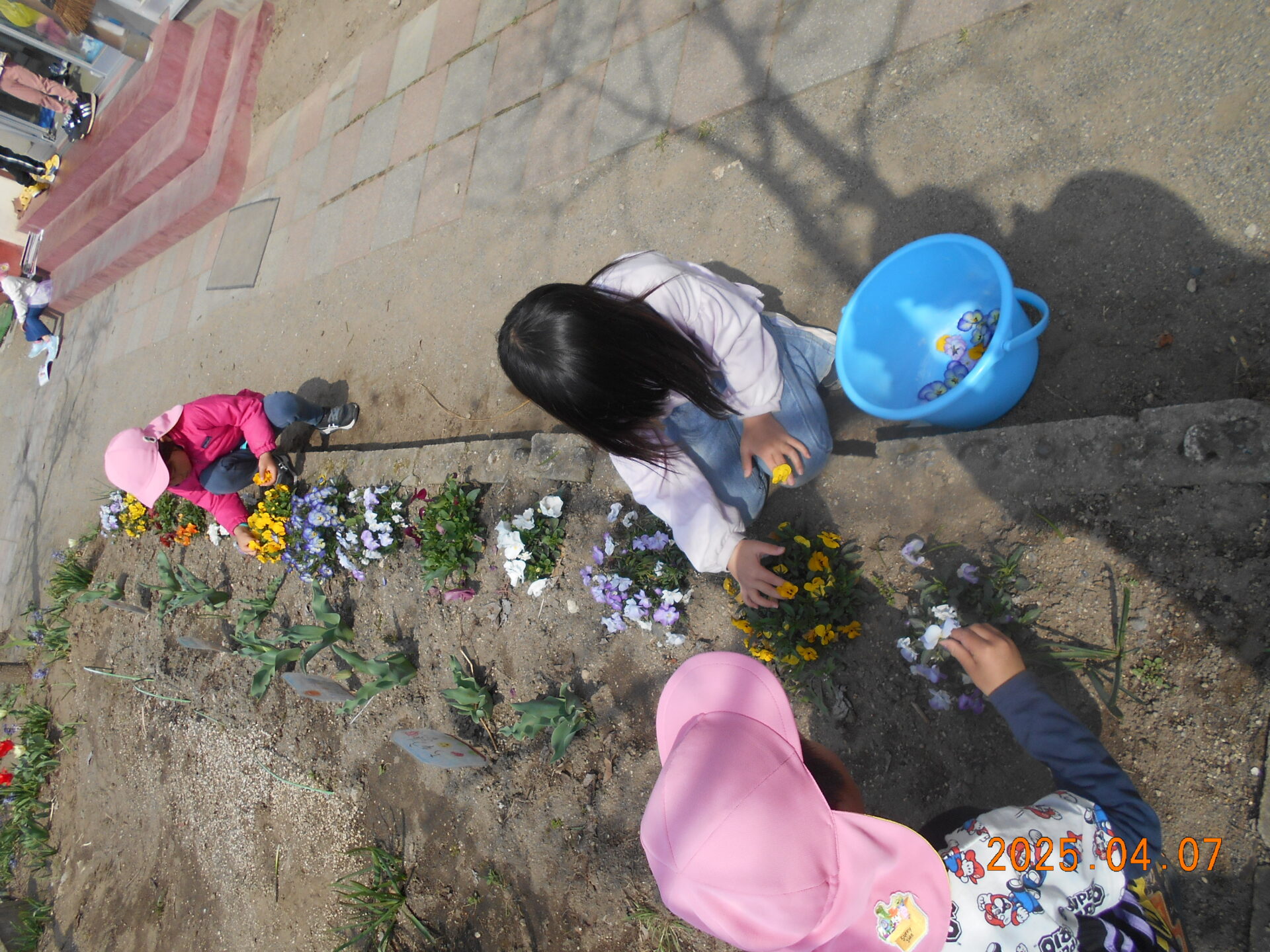 園庭に出てみると花壇に咲いているパンジーやビオラも綺麗で・・・
