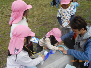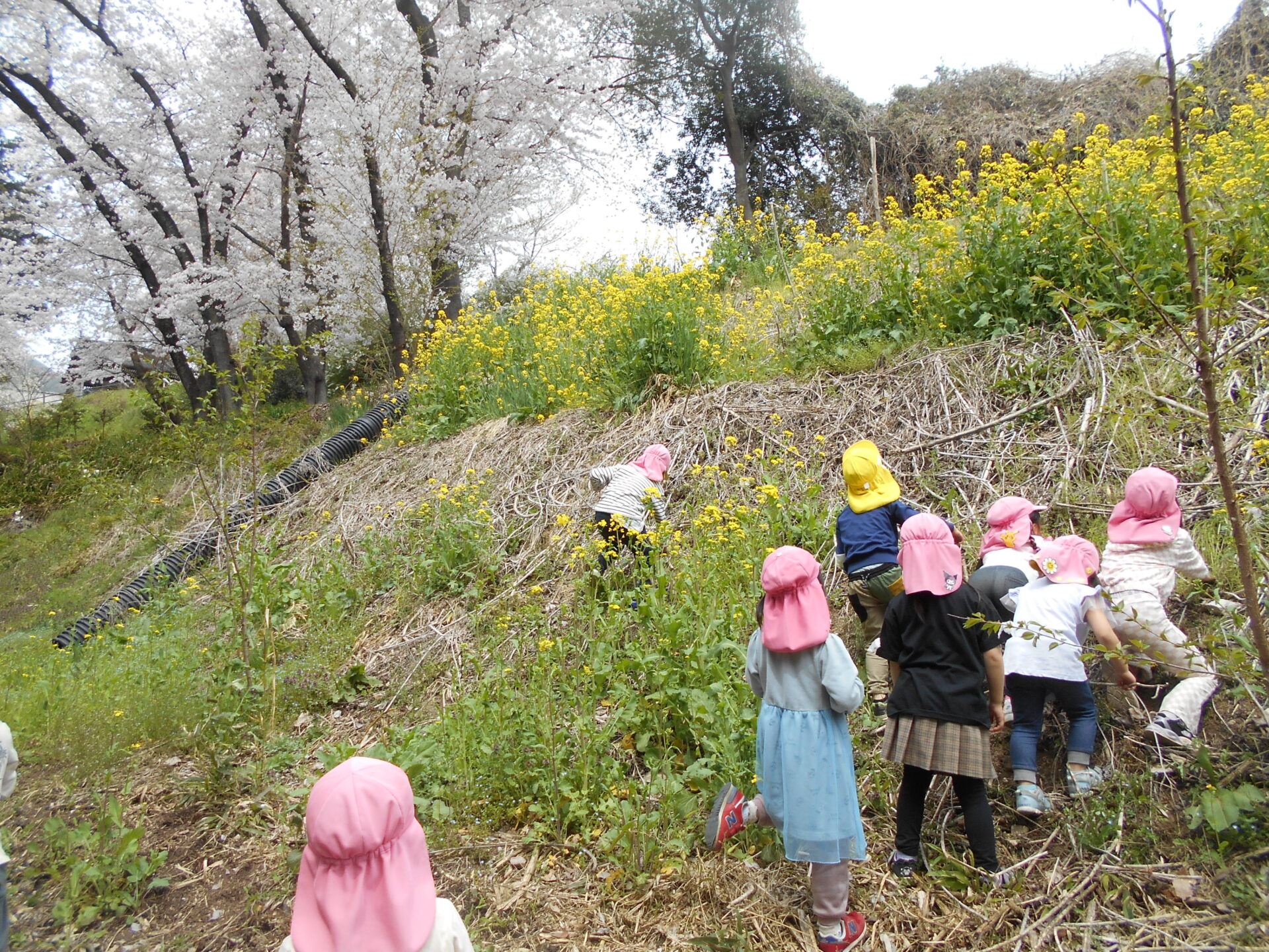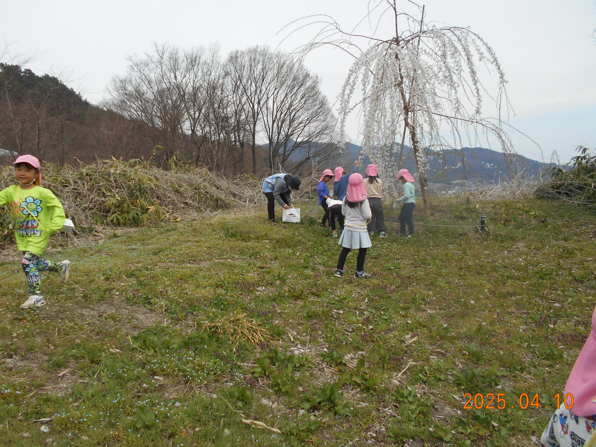 「タンポポ見つけた」「四つ葉のクローバーあるかな」