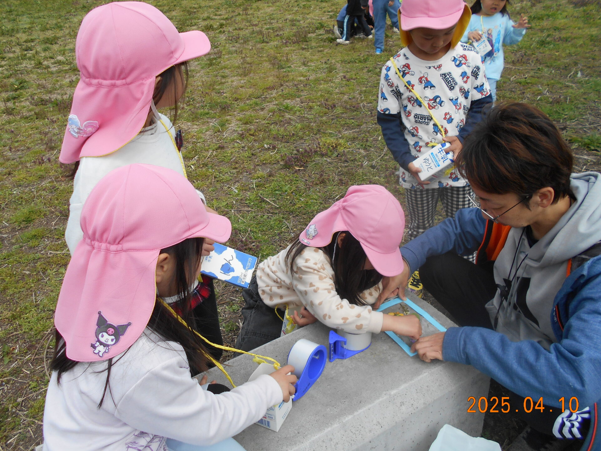 ・摘んだその場で行った「春を閉じ込めよう」の製作。共和の暖かい日差し、爽やかな風を感じながらゆったりと春を閉じ込めることが出来ました。