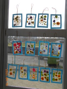 四角い枠の中に、集めた春を色や形、大きさを見ながら自由な発想で閉じ込めました🌷