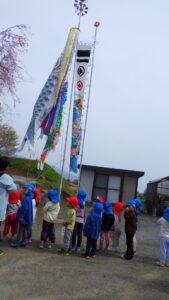「こいのぼりだ~」「すごく大きいな。」とみんな大喜びでした。ご住職がこども達の為に飾ってくださいました。