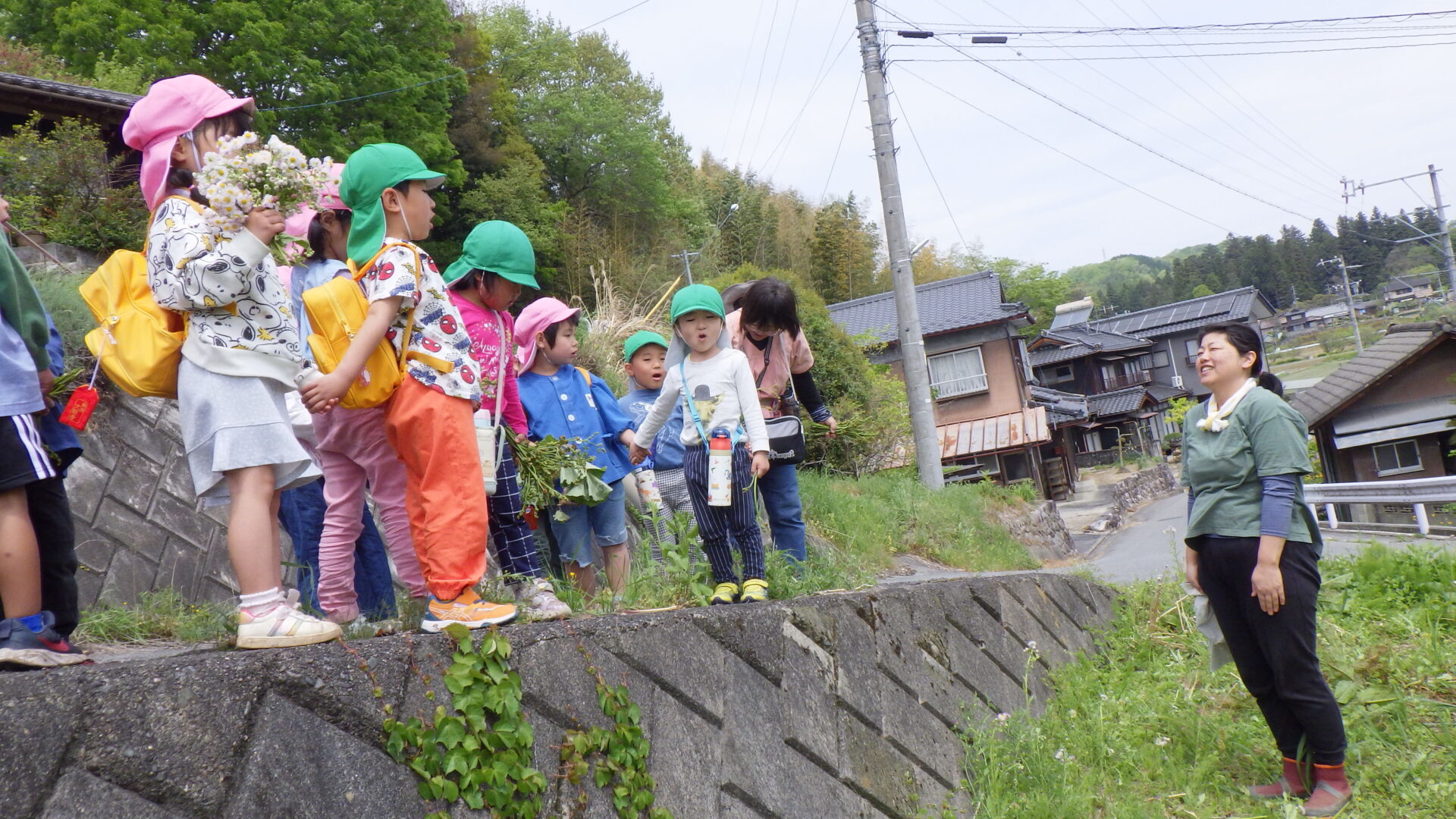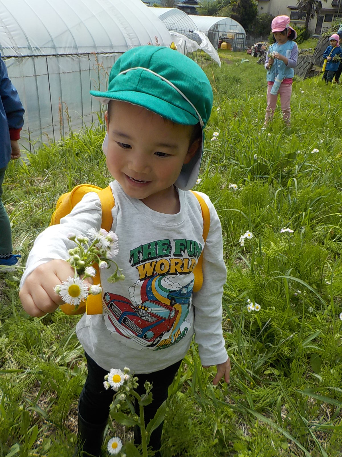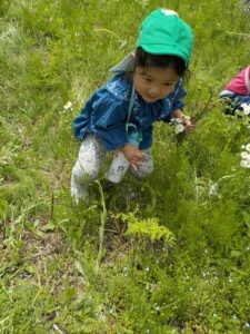 いろいろな草花をジッと見て、ワラビを探したり自分のお気に入りのお花を摘んだりしました。