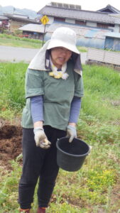 掘り起こしてくれる先をジッと見つめます・・・コロコロと幼虫が顔を出すと「おった!」「捕りたいの!」と争うように捕りだしました。