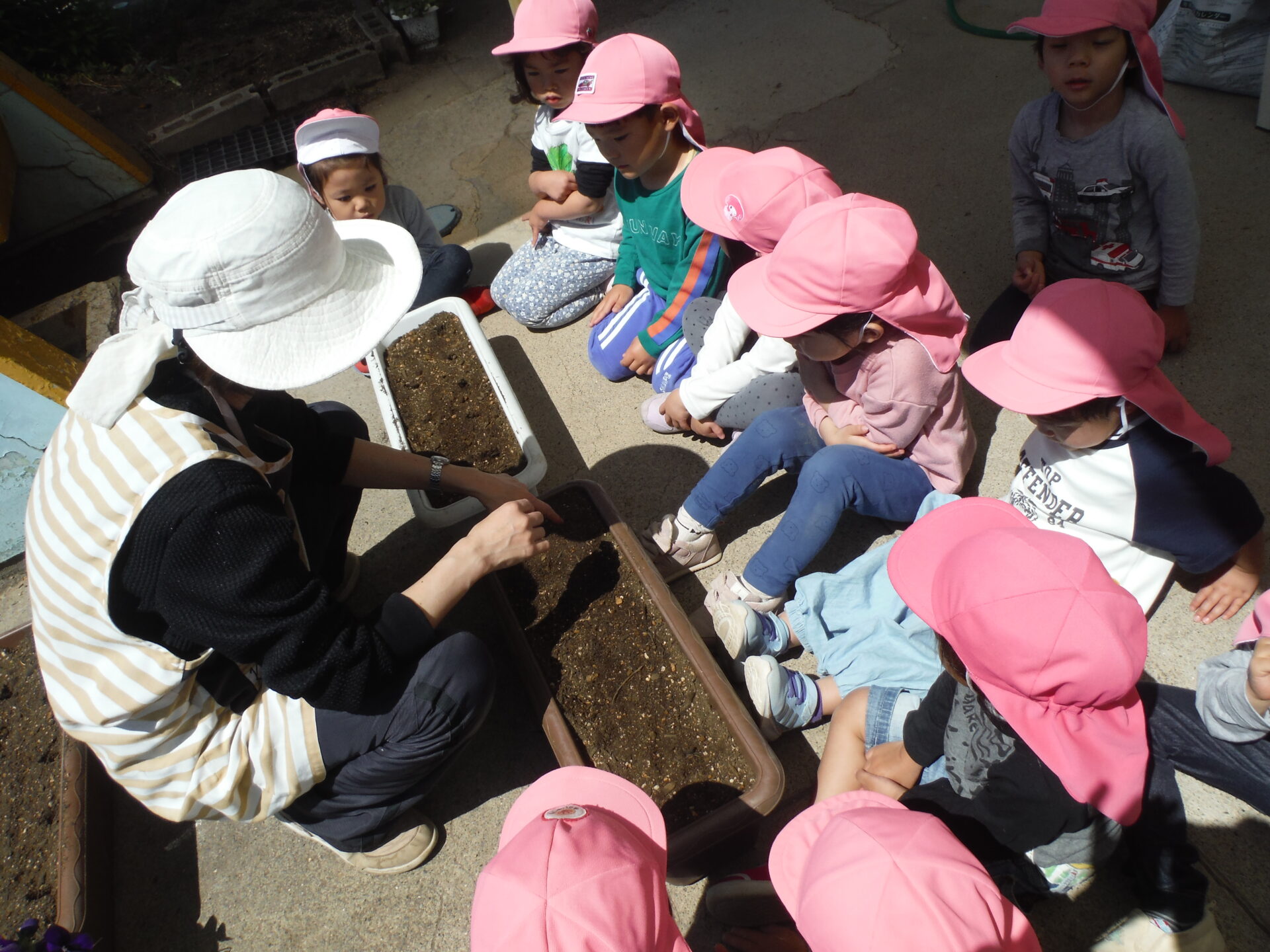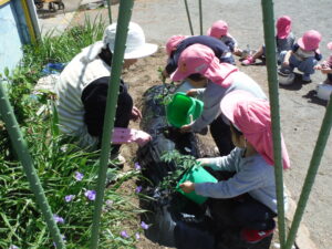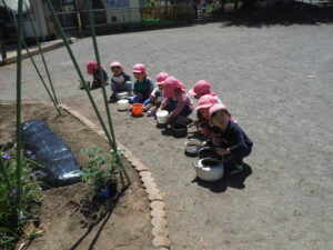 「これは何?」「この中に撒くの?」「何入れるの?」と興味深々の子ども達。