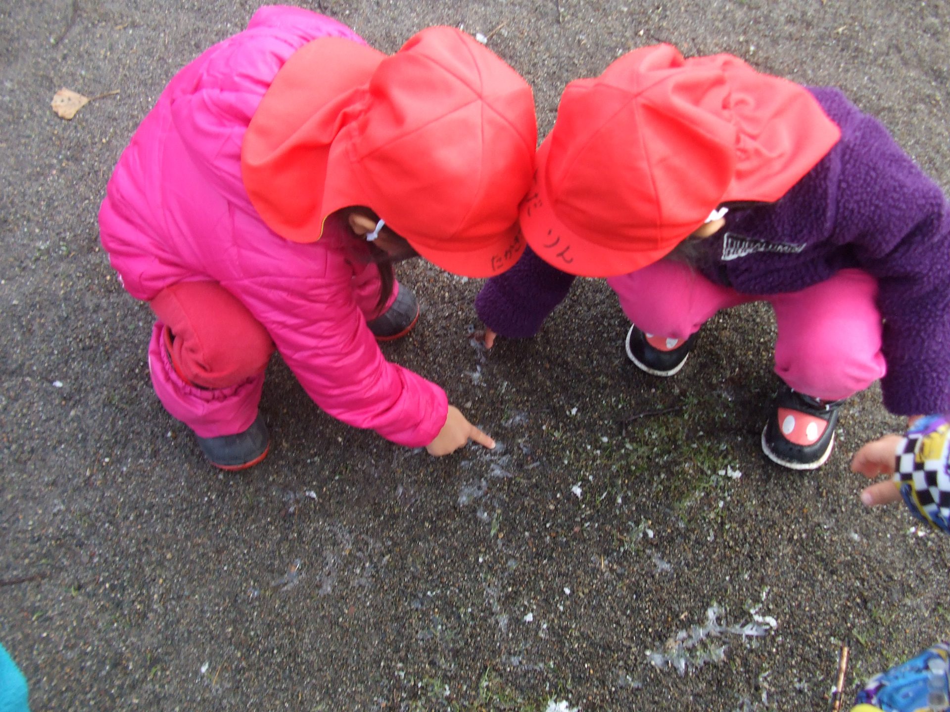 氷をずっと触っている二人。「冷たいね。」「うん。」