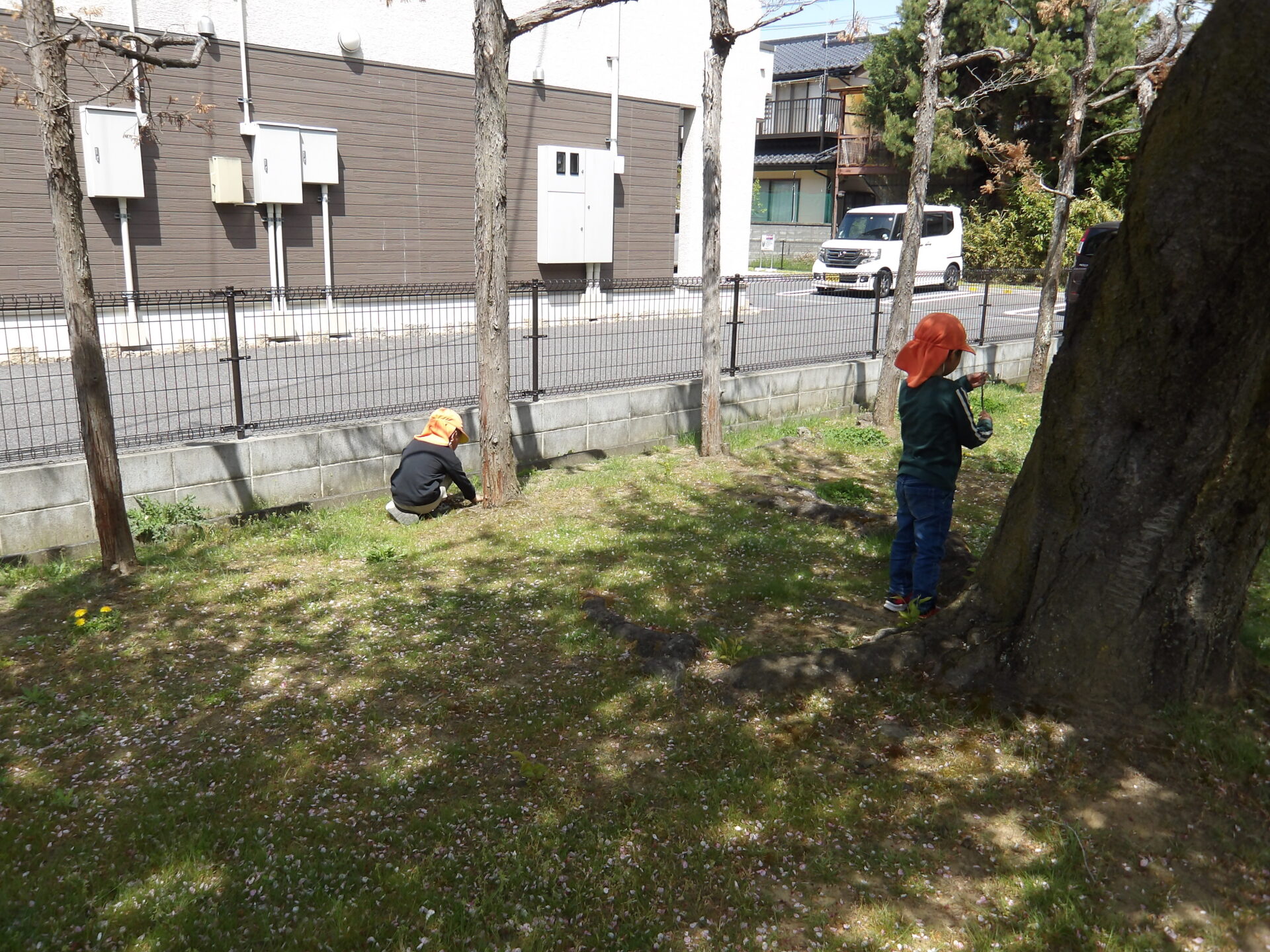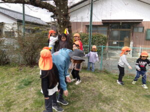 桜の木の枝を集めていた男の子が、「先生!この木桜の匂いがするよ!」「木も匂いがするんだね!」とつぶやきました。