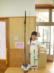 みんなでこんにゃく芋と自分の背の高さを比べながら絵を書きました。