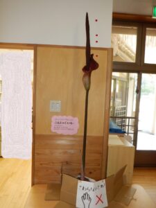 「先生、こんにゃく芋伸びていないよ!でも、花が咲いてる。」
