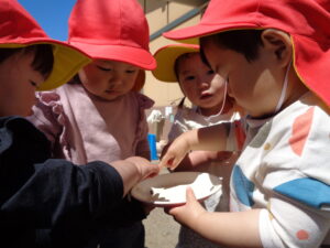 みんなで仲良く観察していると、一人のお友達がチョンチョン!