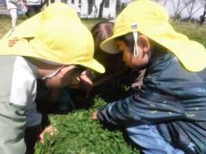 友達といろいろな発見をしながら、五感を使って自然の中で伸び伸びと遊び、心も体も健やかにと願います。