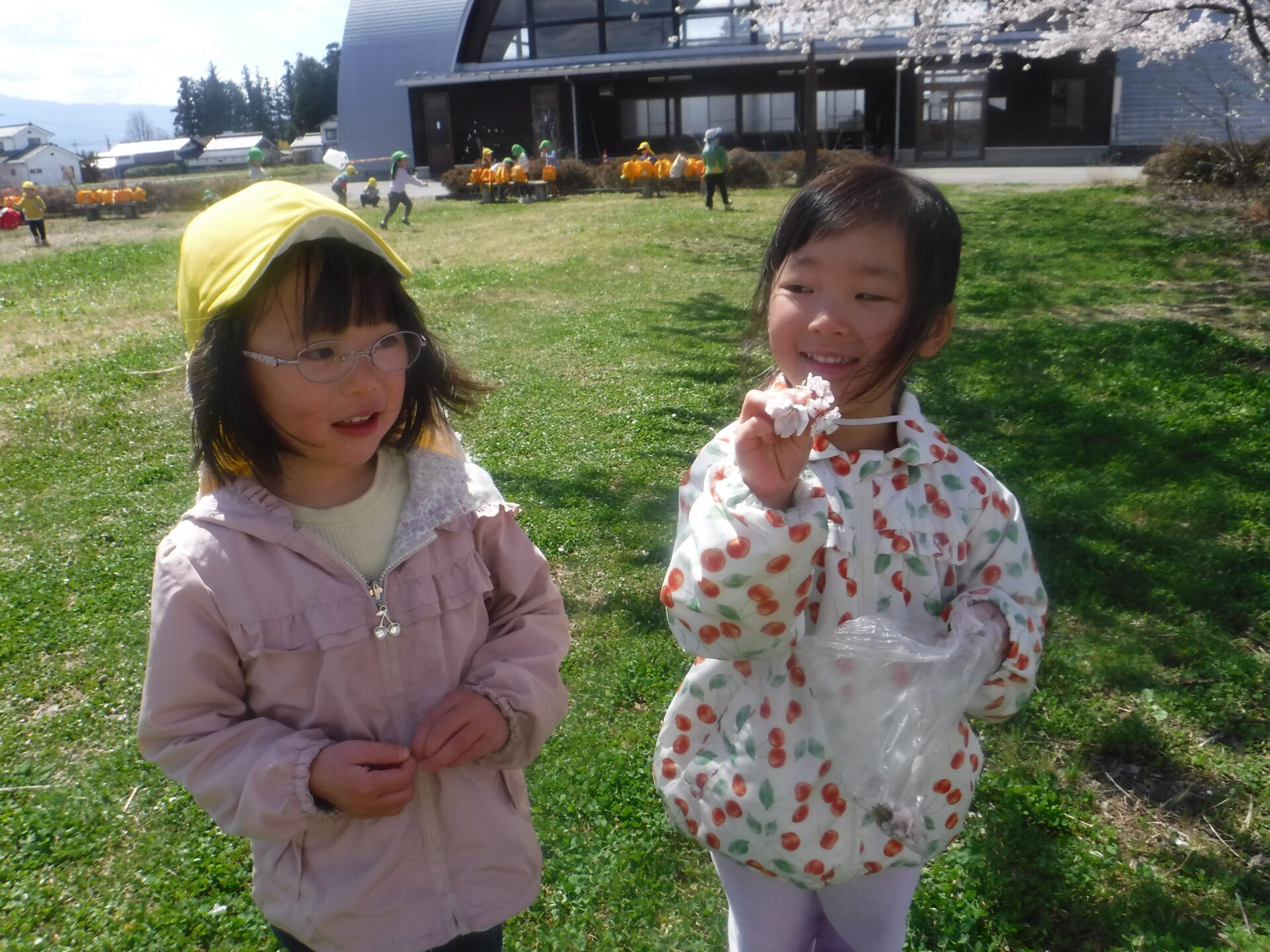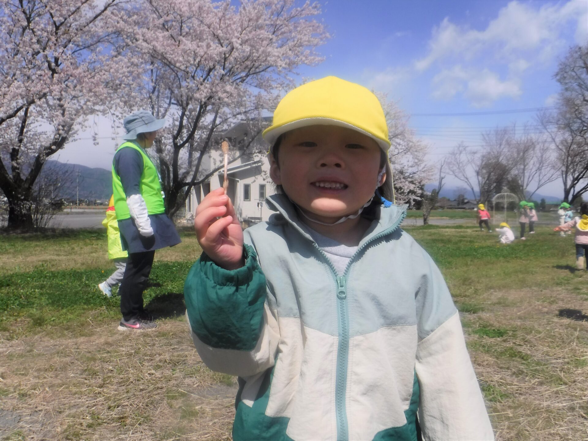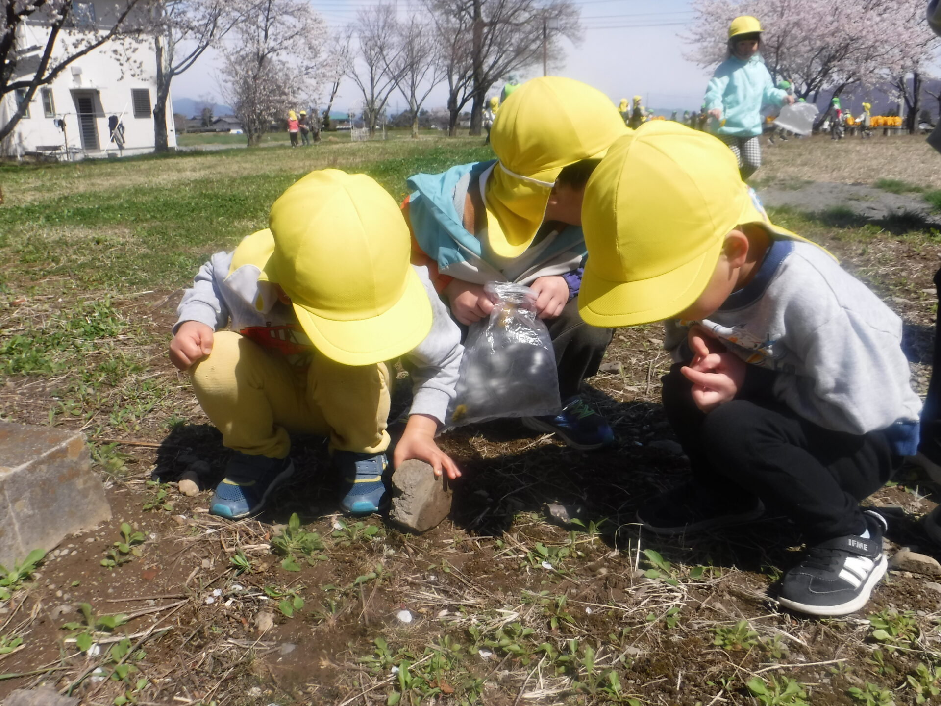 春は自然が豊富で、子どもたちはそれぞれ自分の遊びを見つけて遊んでいます。
