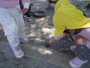 「ぼくたちは、ありさんのお家を作るんだよ」「ありさんをつかまえたら、ここに入れるんだよ」