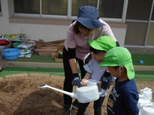 じょうろで水やりもし、“自分達の畑”という思いも芽生えていました。