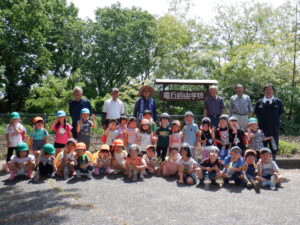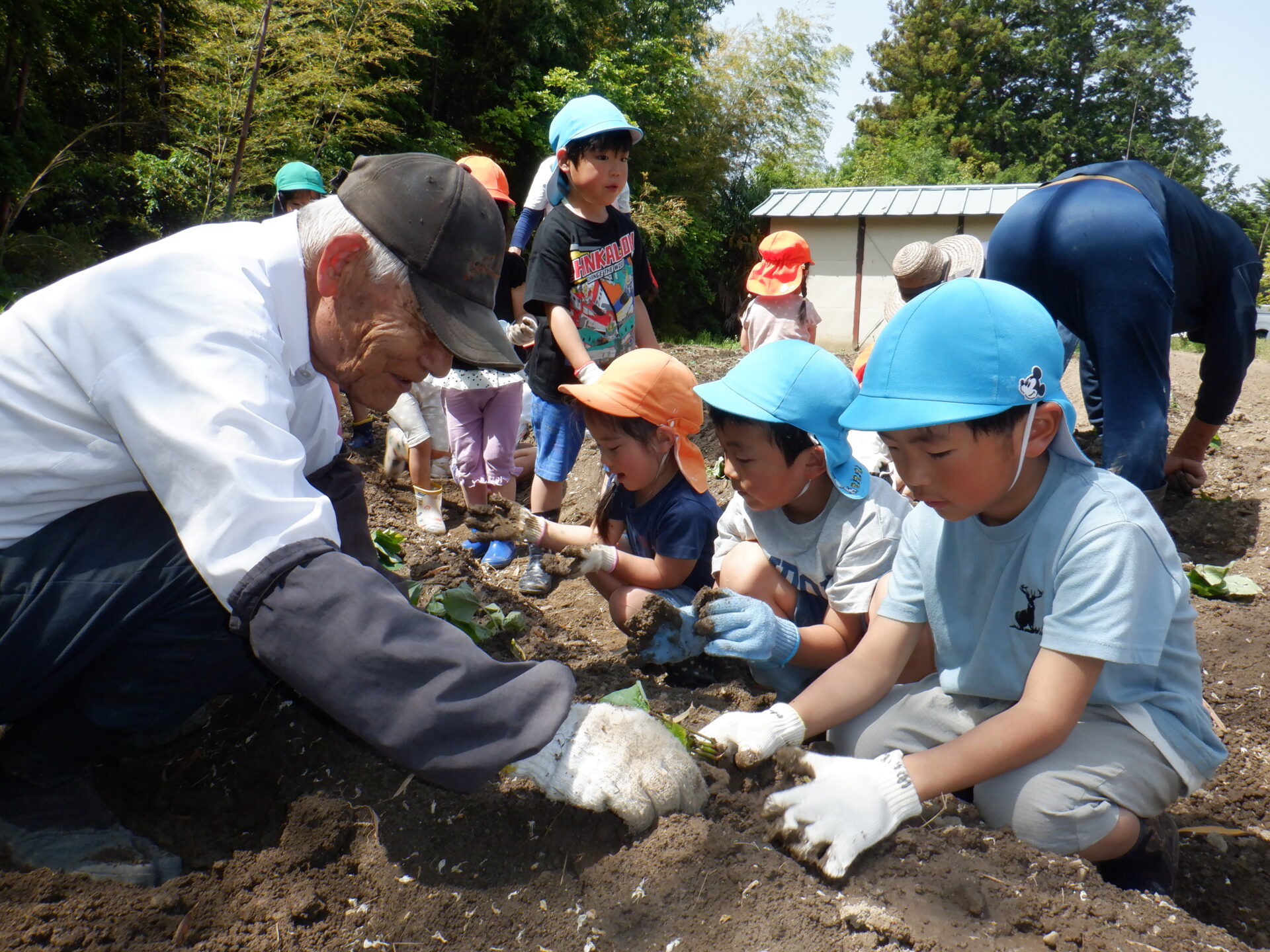・毎年行っているさつまいもの苗植え。地域の方も保育園に慣れてくれ、今までよりも関わりややりとりが増えたように感じる。こういった経験の中で、子どもたちが地域を知り、地域に親しみを持つきっかけになっていってほしい。