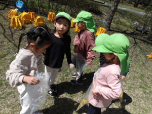 自然に触れる中で、子どもが不思議に思ったこと、「知りたい」「やってみたい」の気持ち、気づき、ぽつりとつぶやくほっこりする言葉を大切に保育していきたいと思いました。
