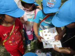みんなで捕まえた、ちょうちょうの名前を図鑑を見て調べているところです!!